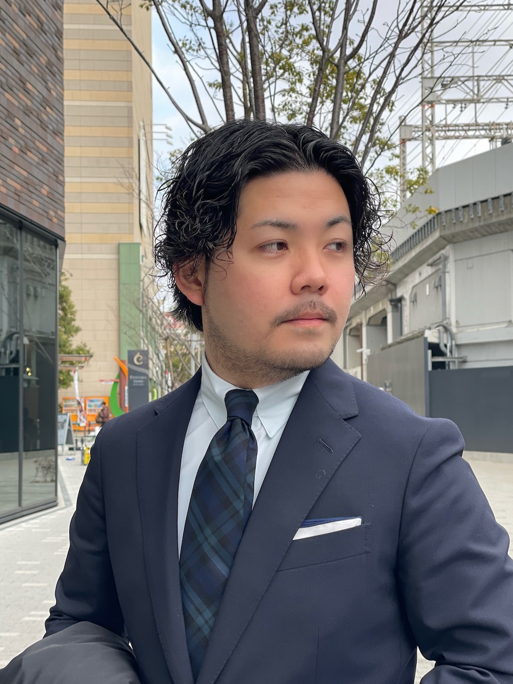 ネイビースーツと合わせるとシックで