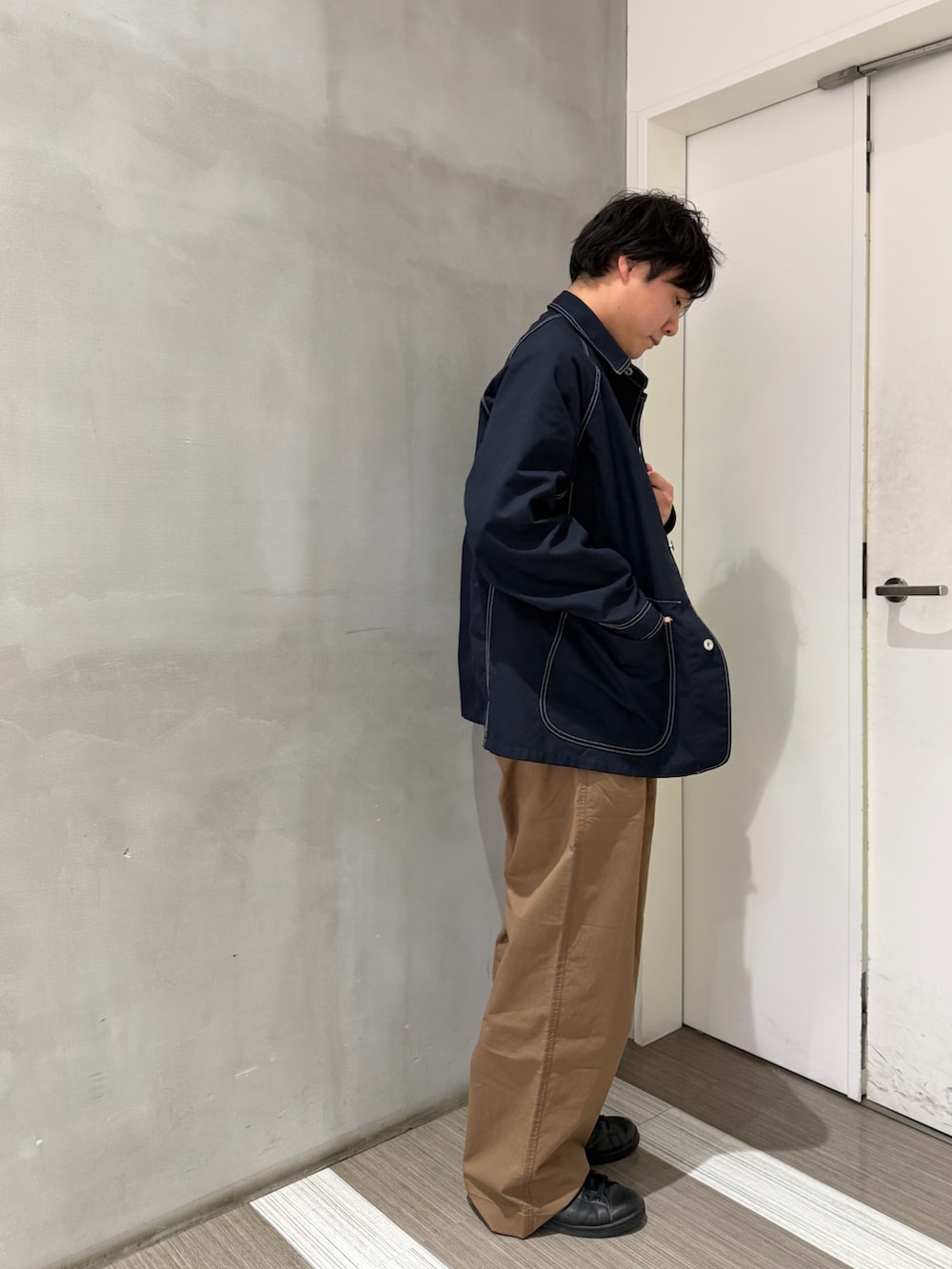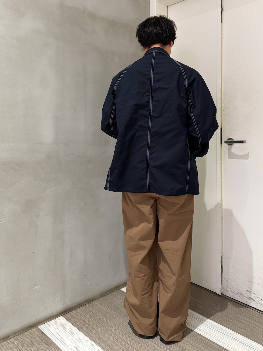 パンツも同じくFORK&SPOONのアイテム。ワイドなシルエットとブラウンの色味がカバーオールと相性抜群です!