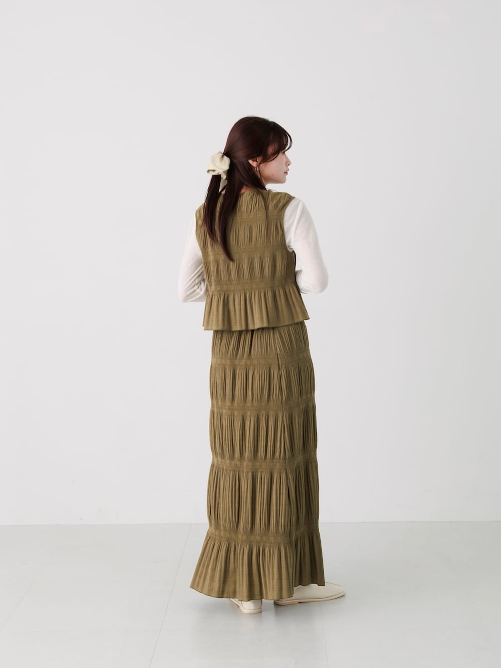 プリーツ加工によって伸縮性もあるので着ていて緊張感がないのもおすすめなポイントです✨