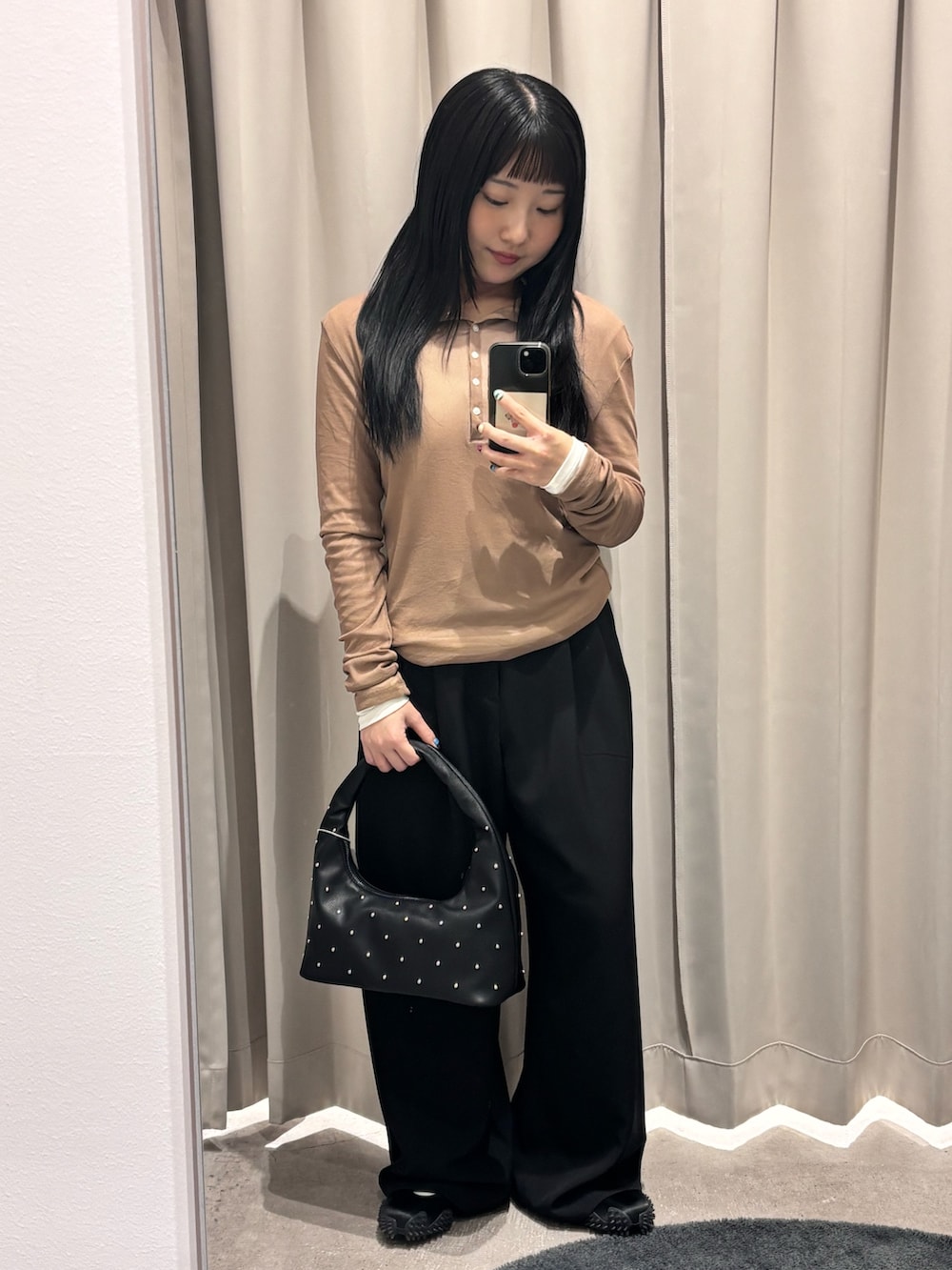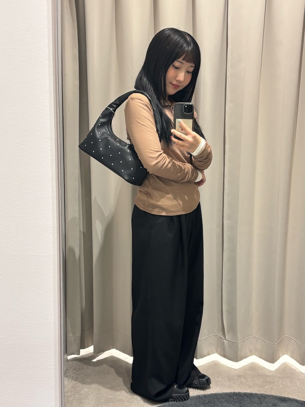 ボトムスは、さらっとした生地感で、とても履きやすくストレスフリーです!ルーズなシルエットですが、綺麗めに着ていただけます!