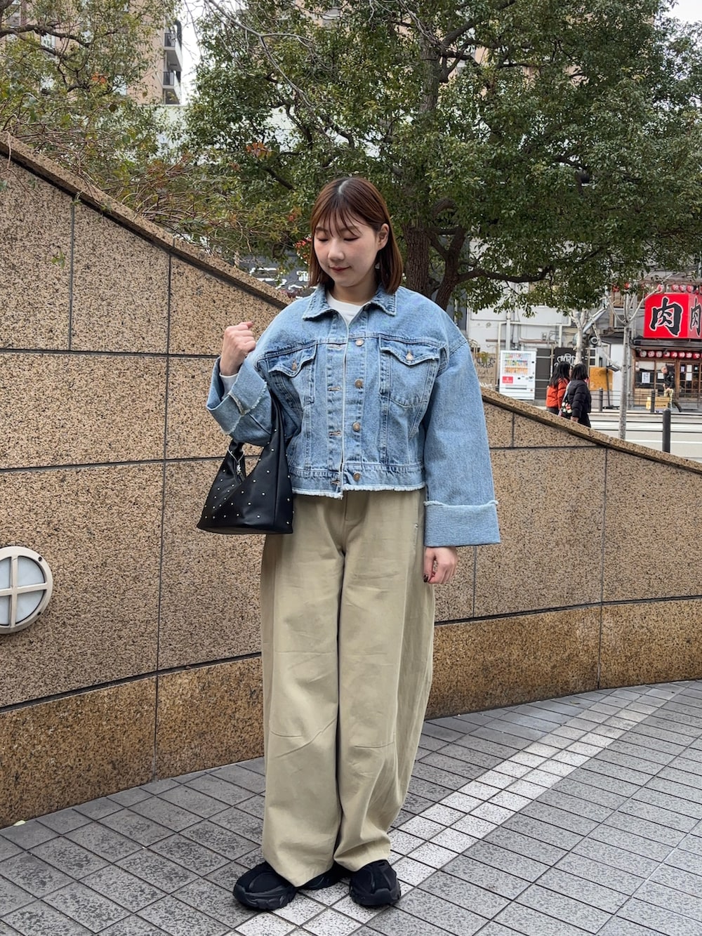 袖の折り返しが大きくなってるのがポイントです!クロップド丈なのでスタイルアップも◎