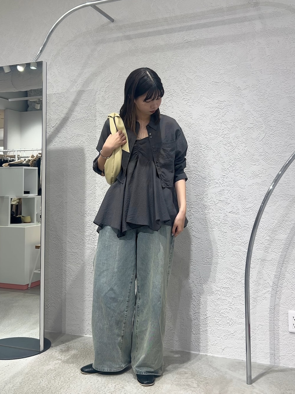 甘めデザインのトップスに、ダボっとしたデニムを合わせた甘めカジュアルコーデ!