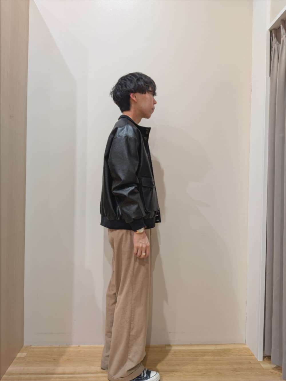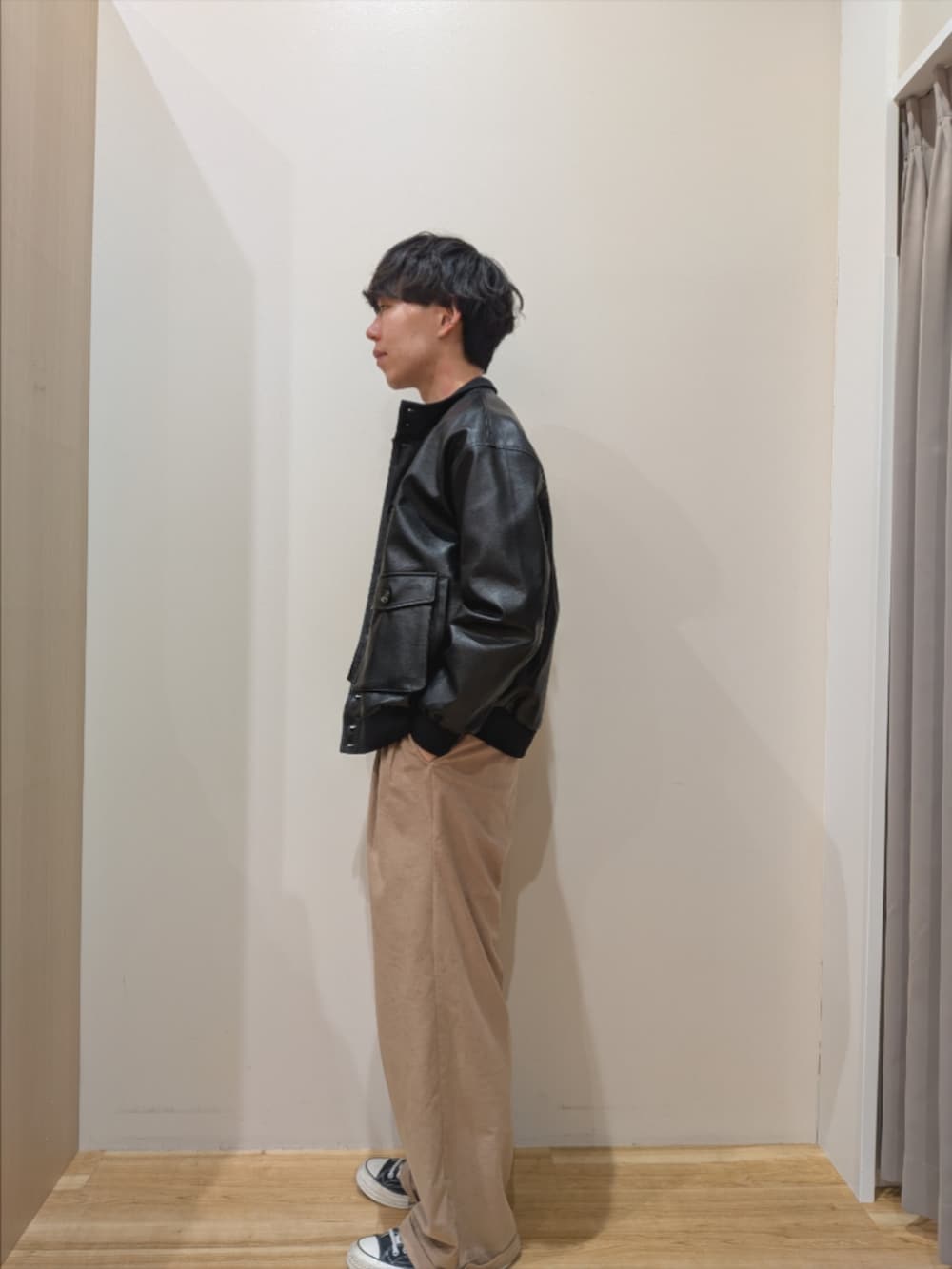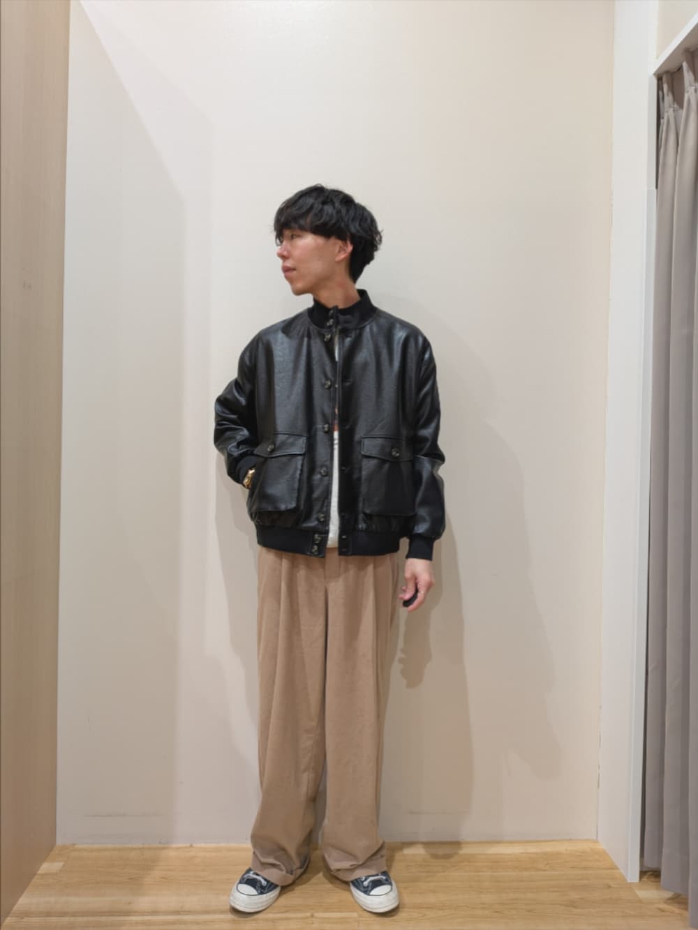 レザーの光沢感が上品な印象を与えてくれるメインアウターです。