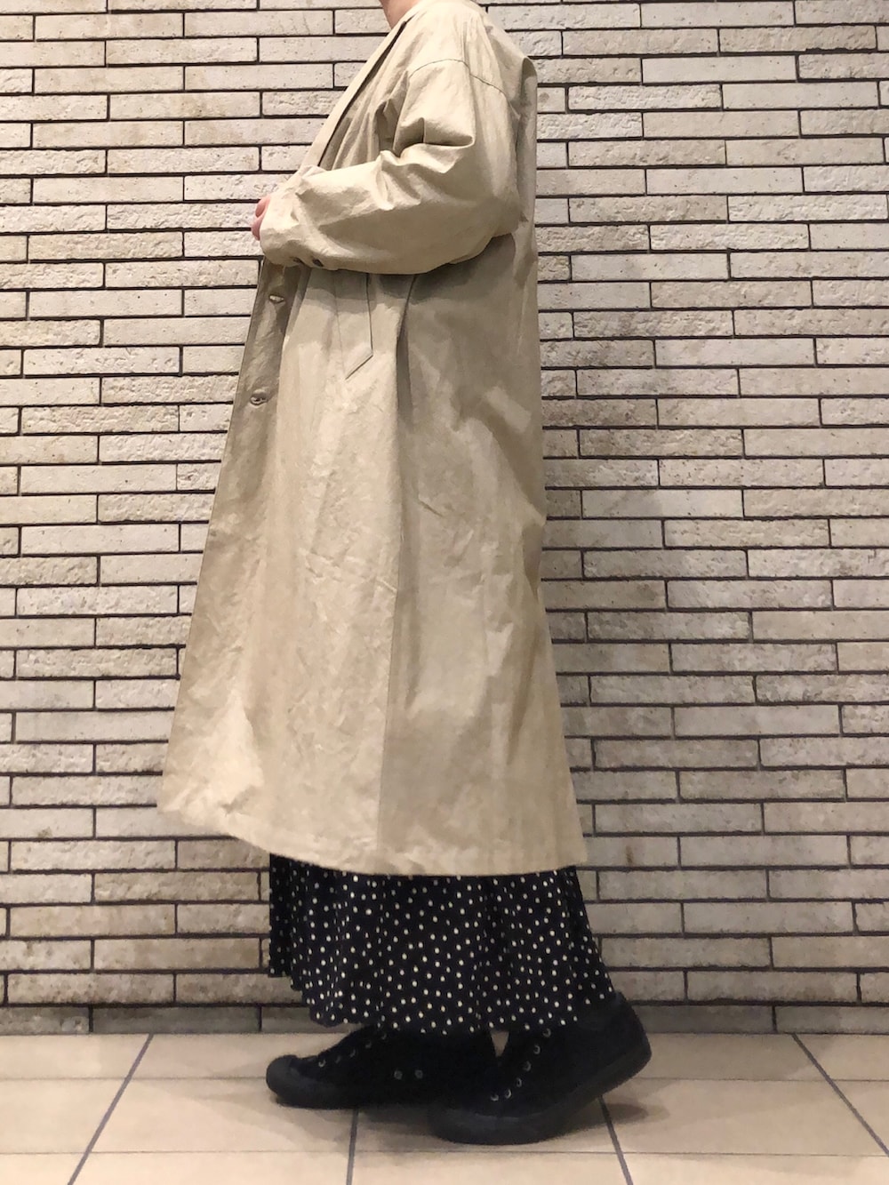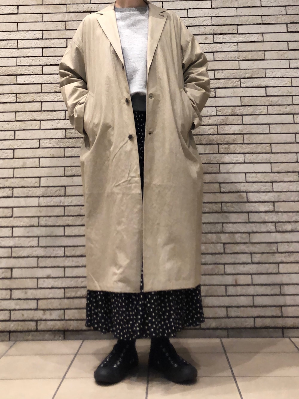 幅広い着こなしにフィットするコートです。
