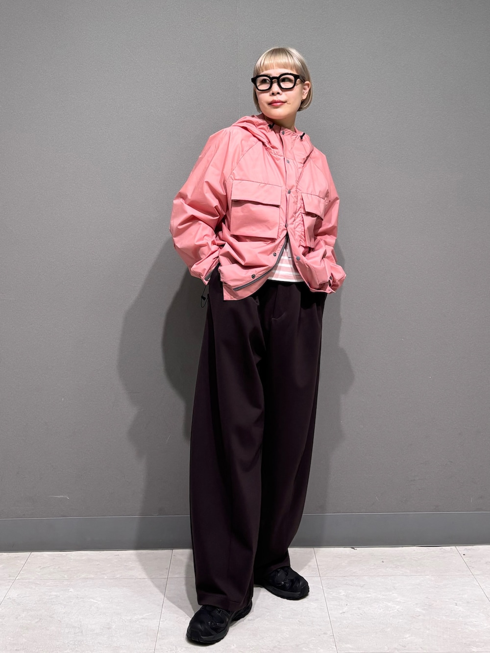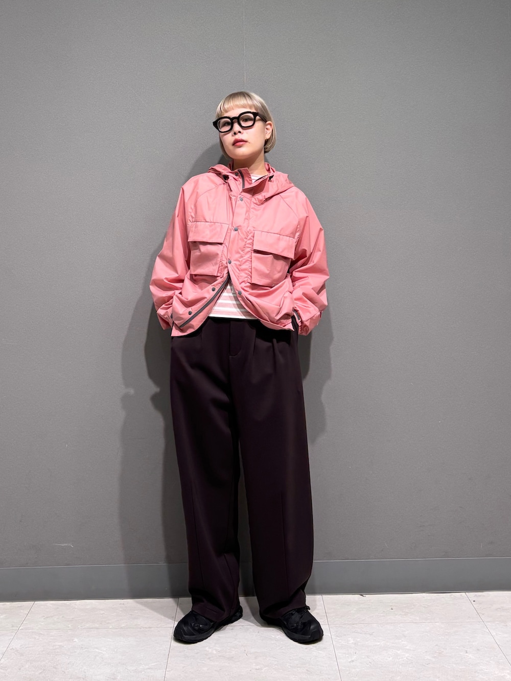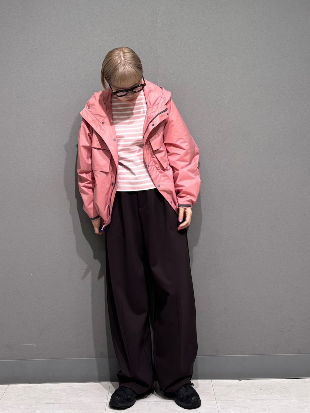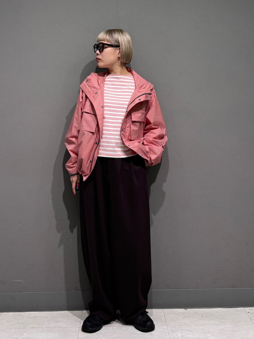 中にもピンクのボーダーを着ています◎