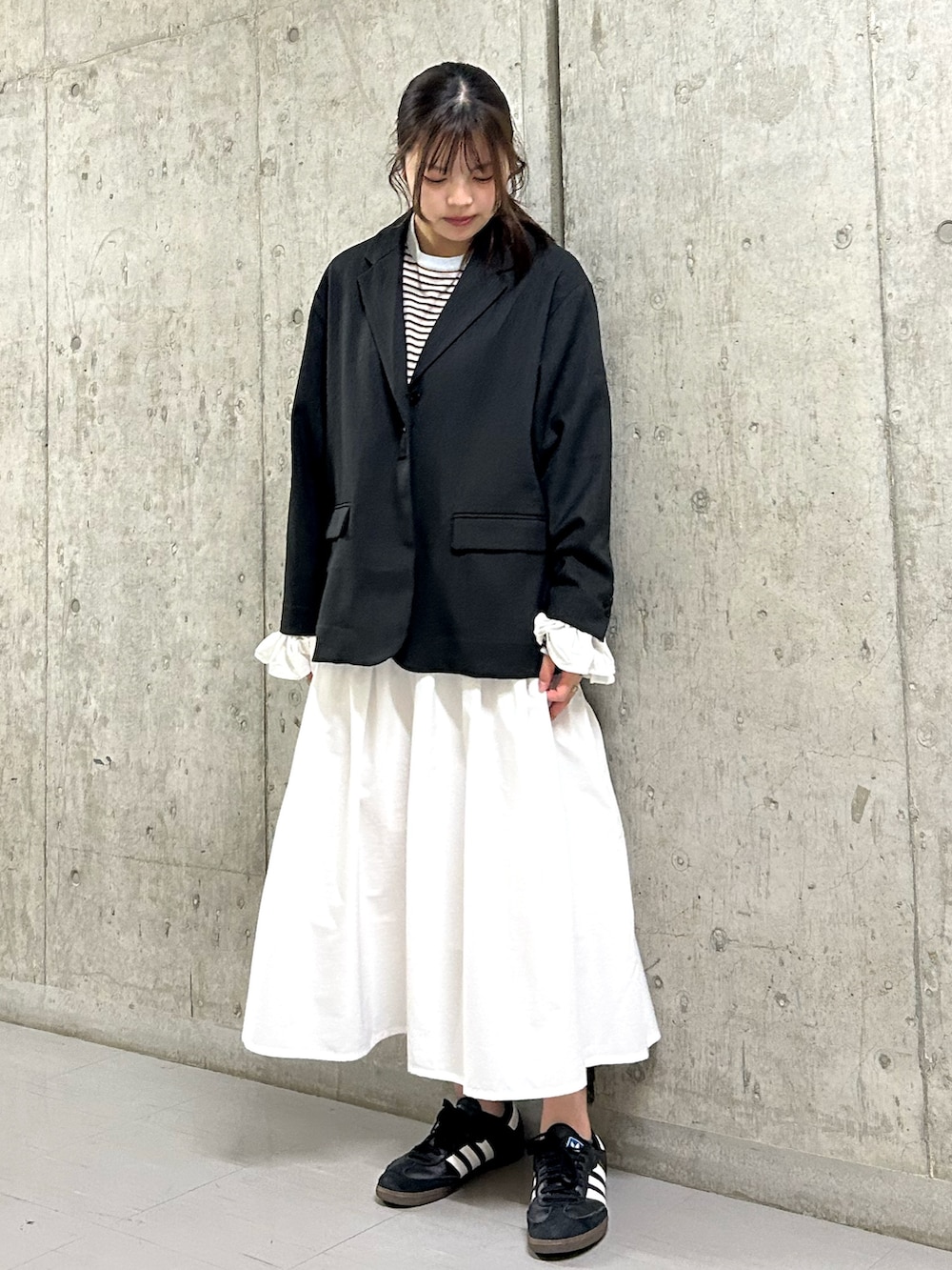 スカートはショートブーツでもスニーカーでも合わせやすい丈感となっています✨