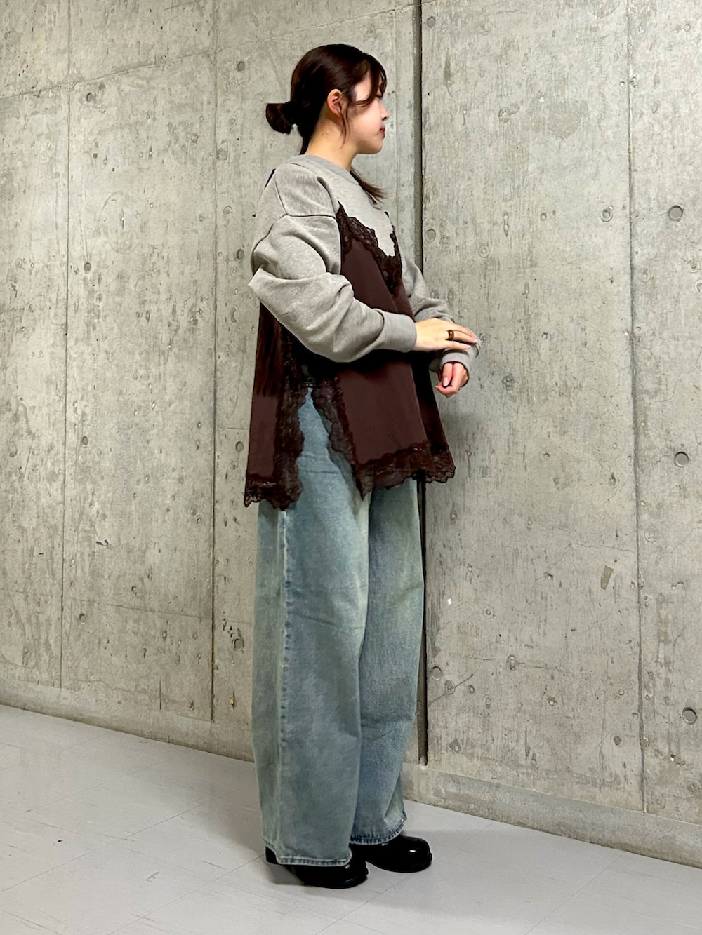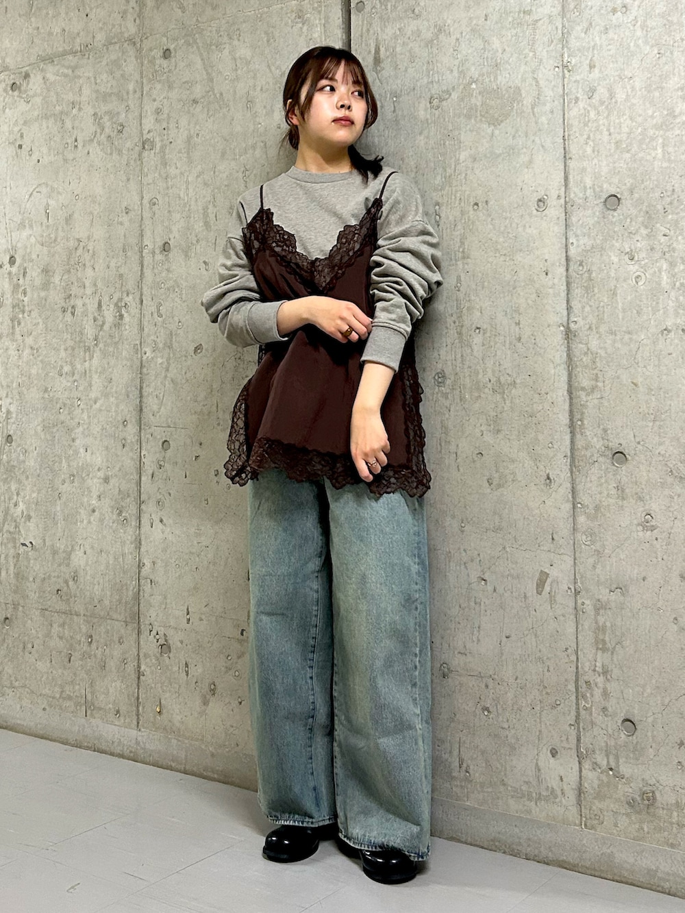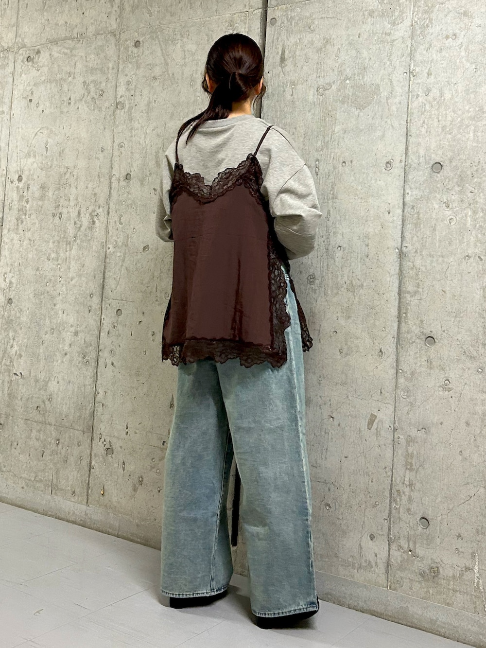 大人気のレースキャミソールはトップスの上からはもちろん、下に着ていただいても可愛いですよ✨