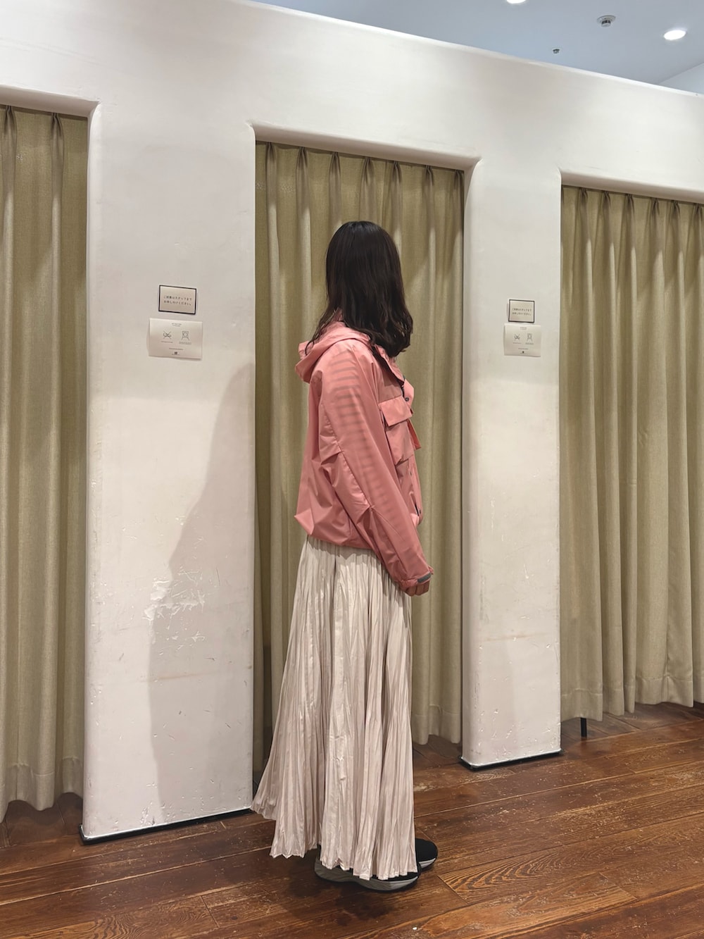 それに綺麗めなプリーツスカートを合わせて、カジュアルすぎないコーデにしました。