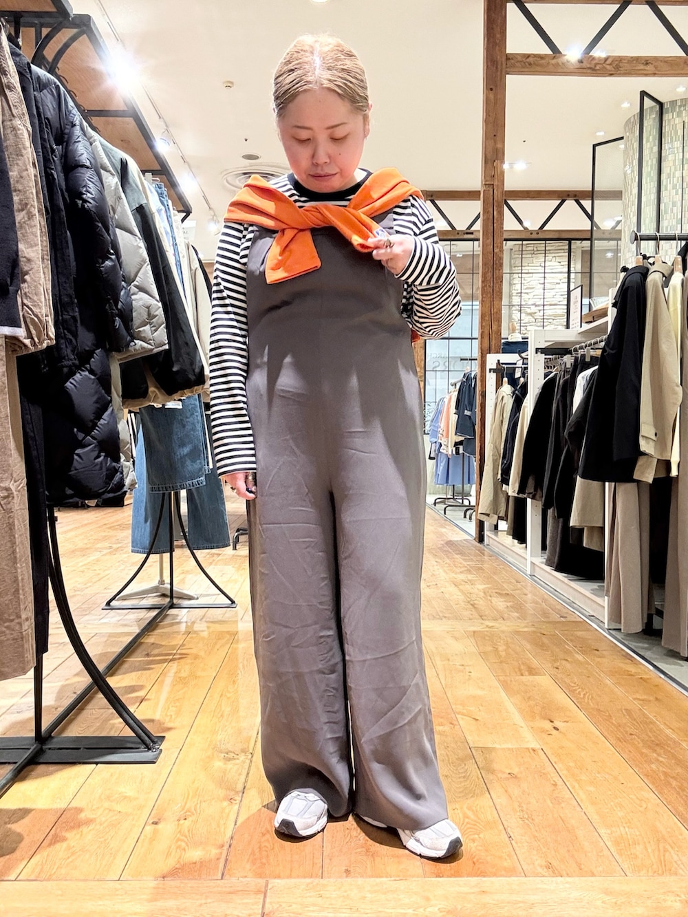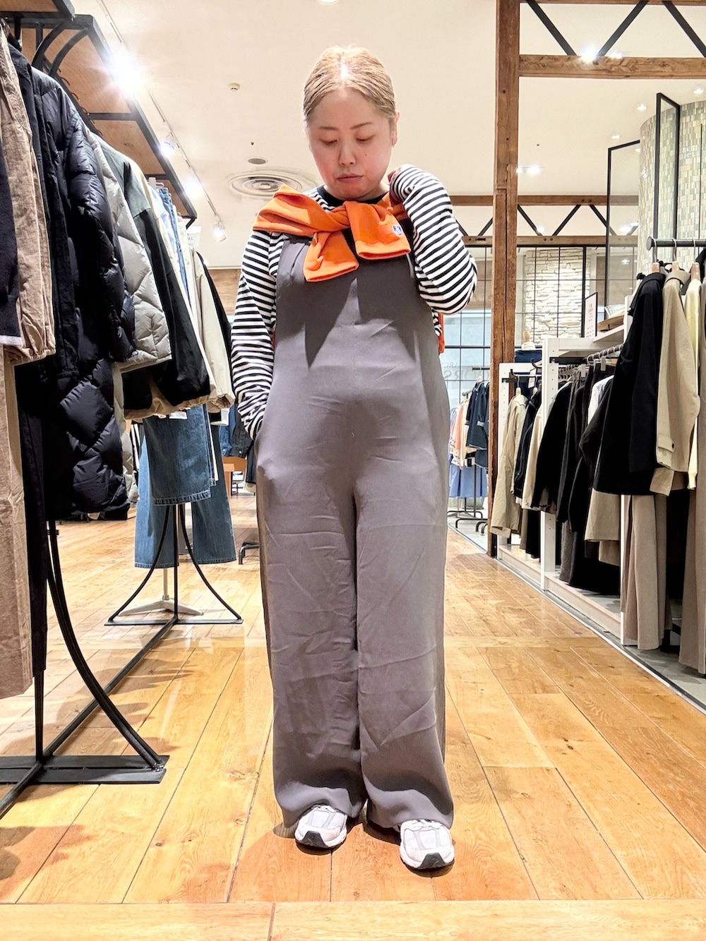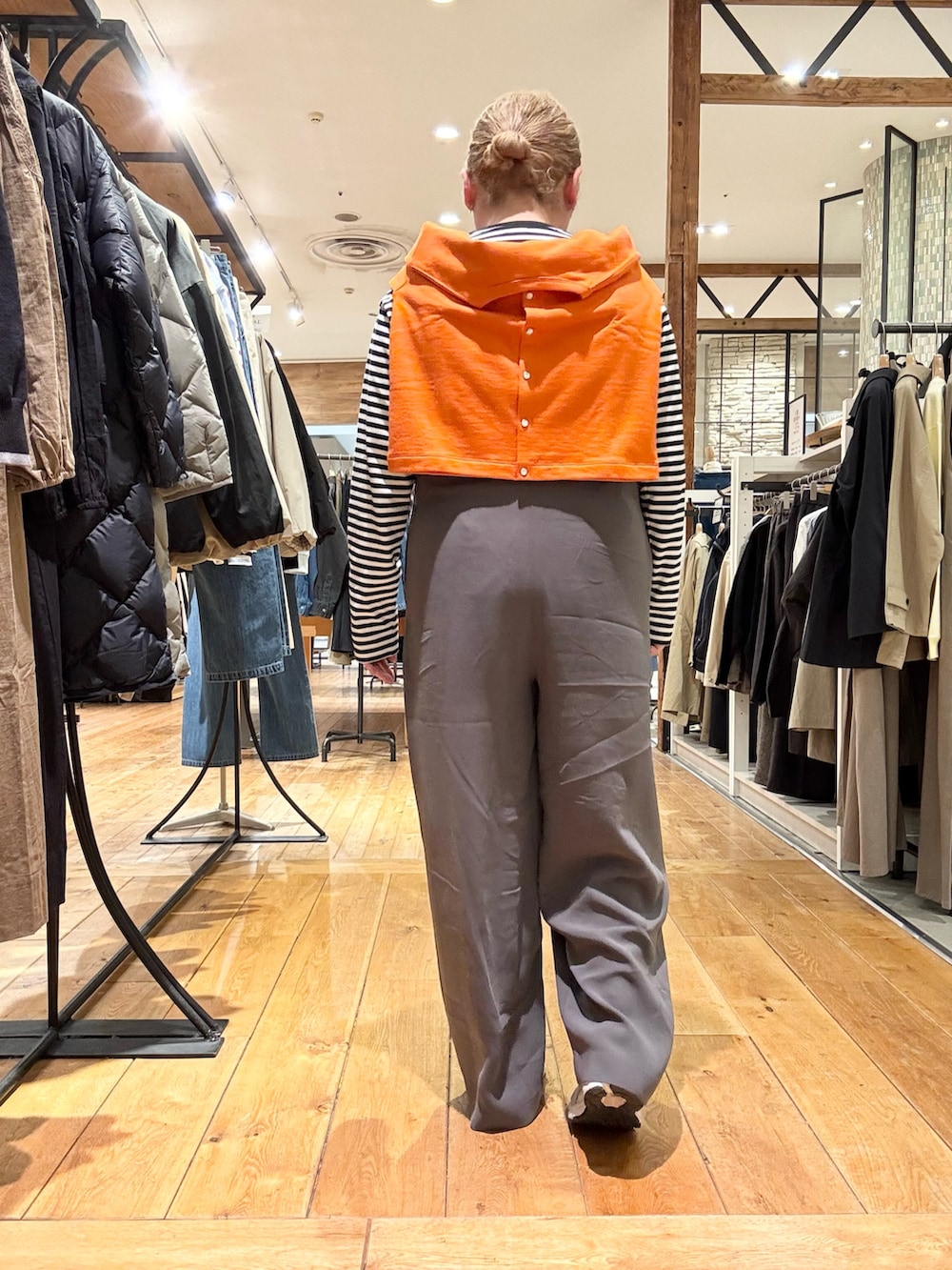 ポイントにオレンジのカーディガンを🍊