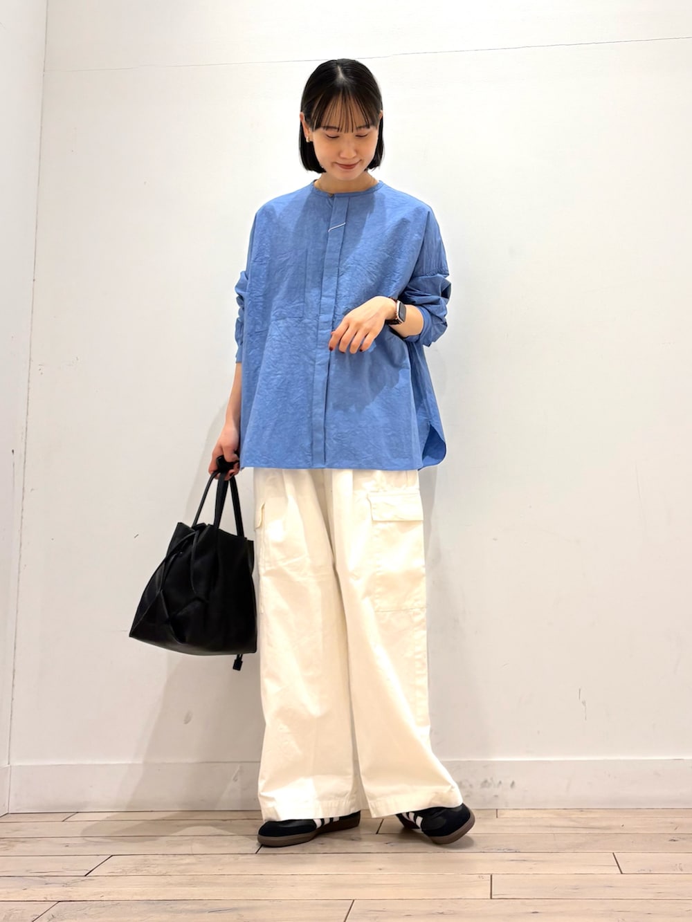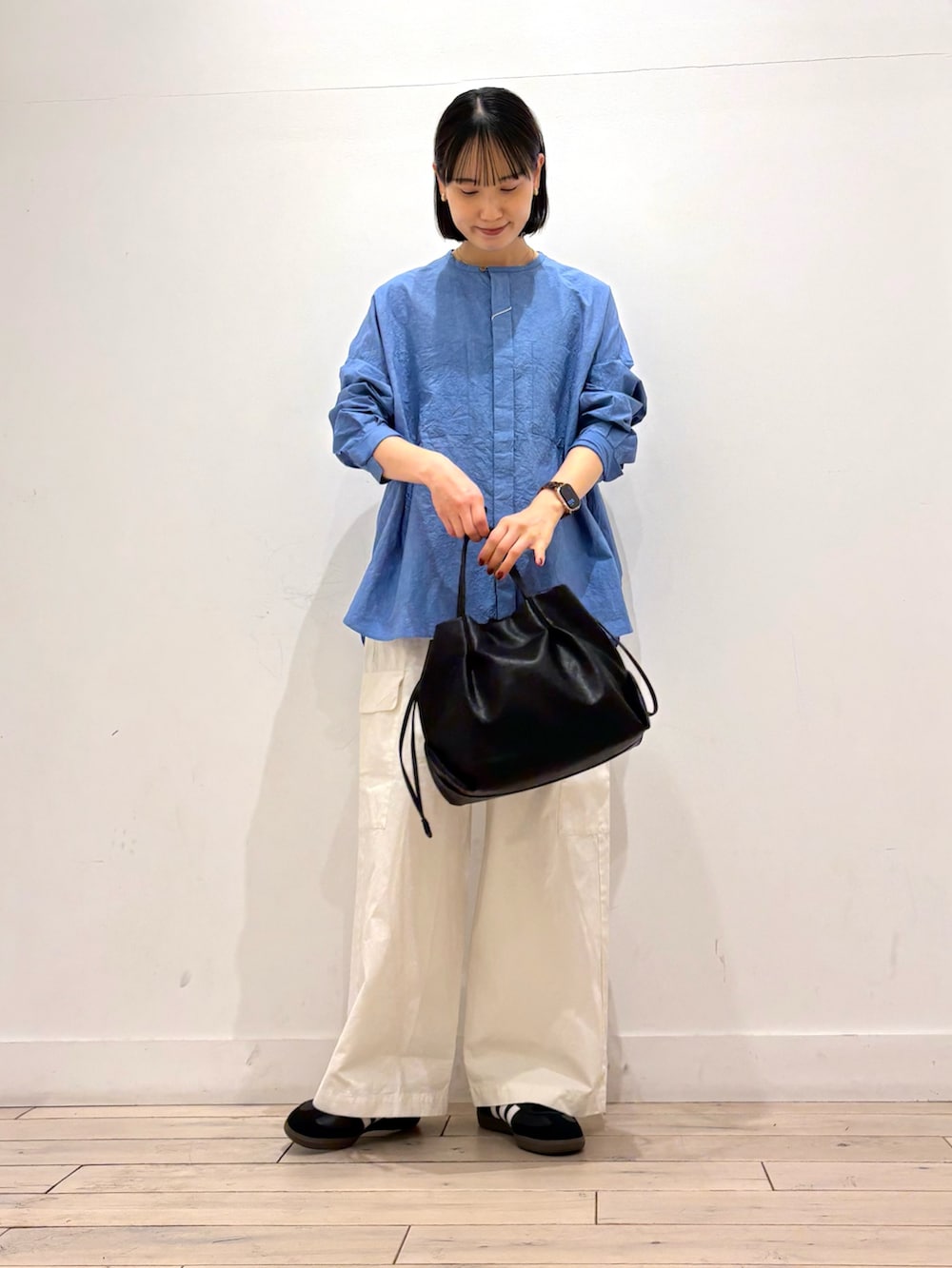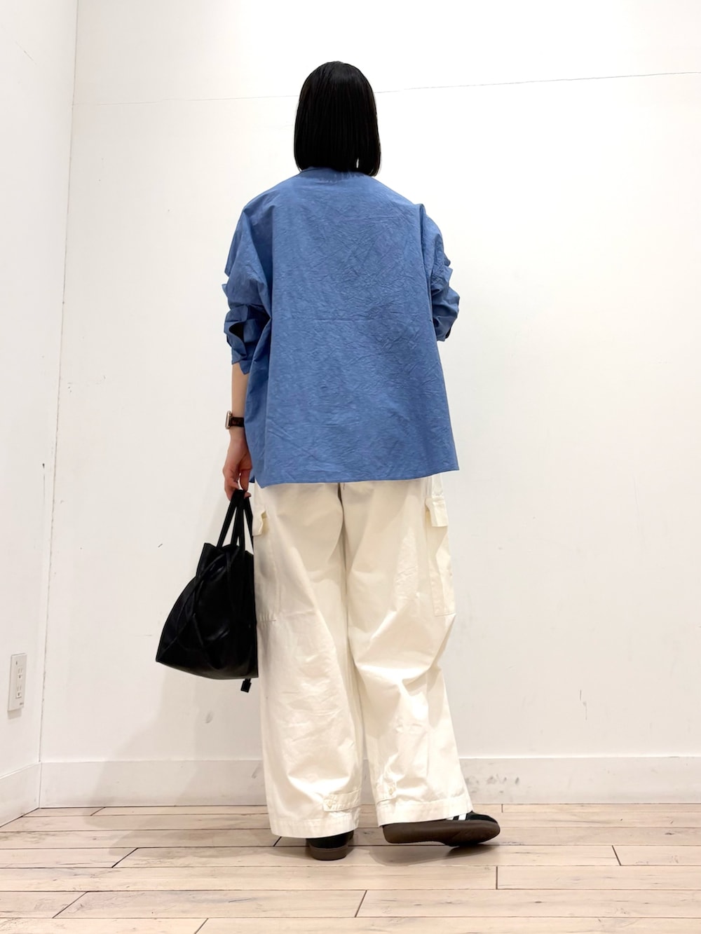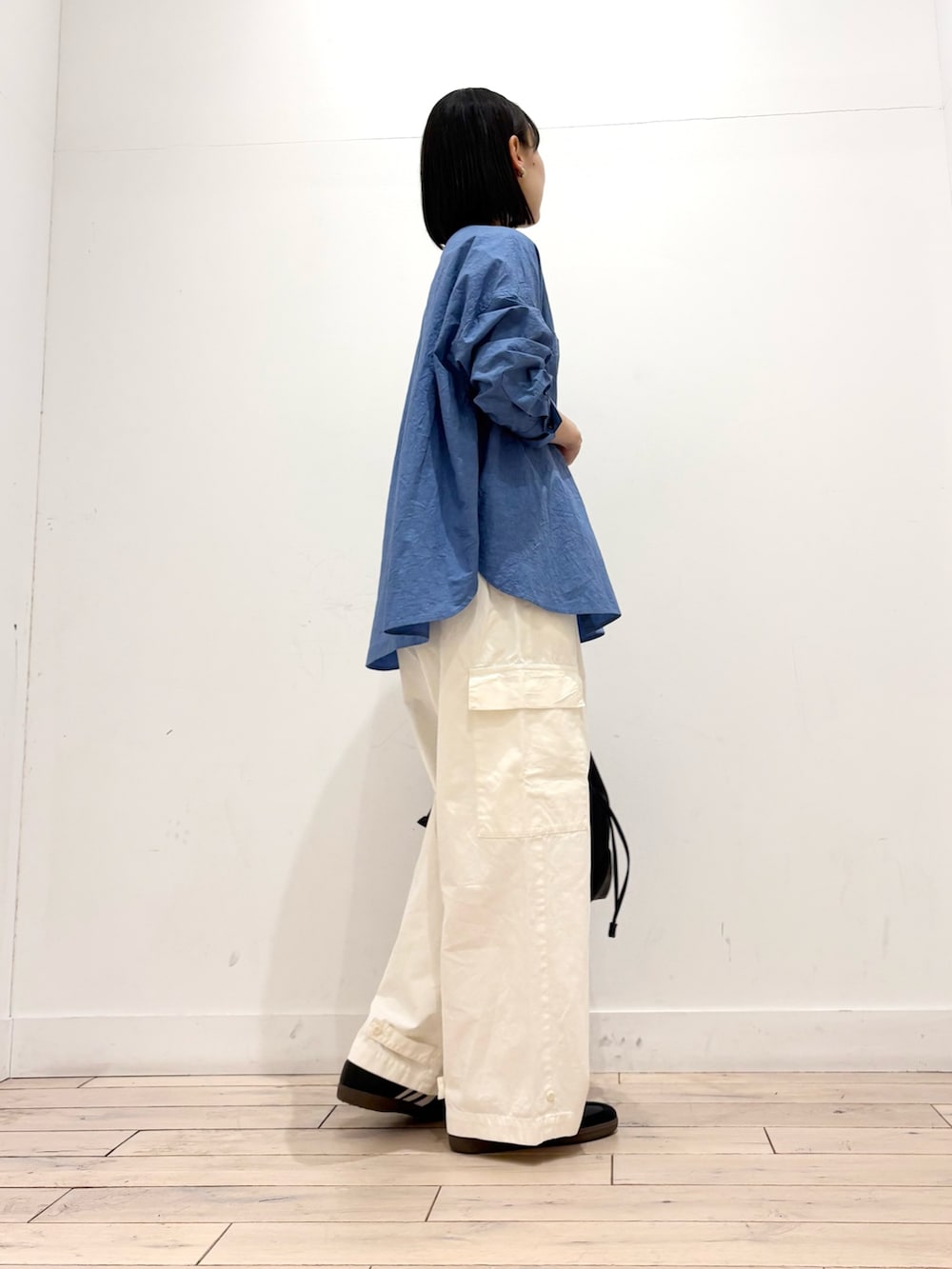程よくハリがあるコットンリネンを使用しており、ほのかなシワ感が雰囲気のある一枚です👏