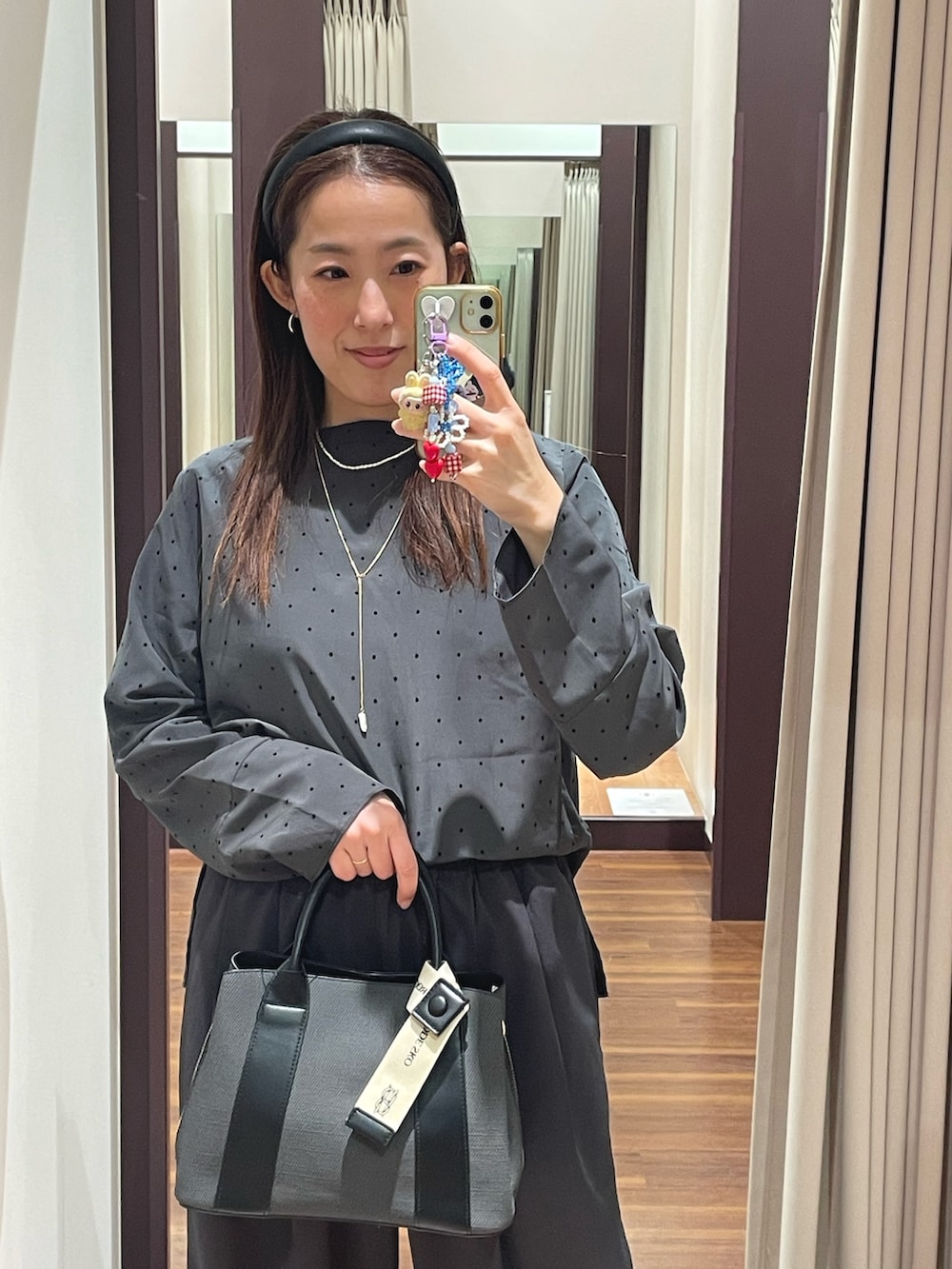 モノトーンですが、小物がポイントになりかわいいです♡