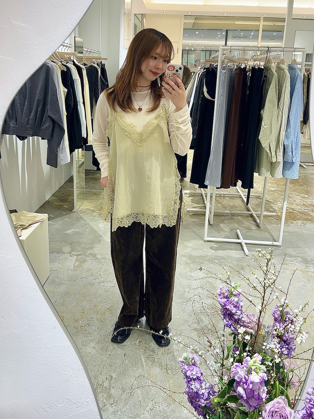 レースが甘めなので、ボトムはカジュアルなもので合わせるのも◎