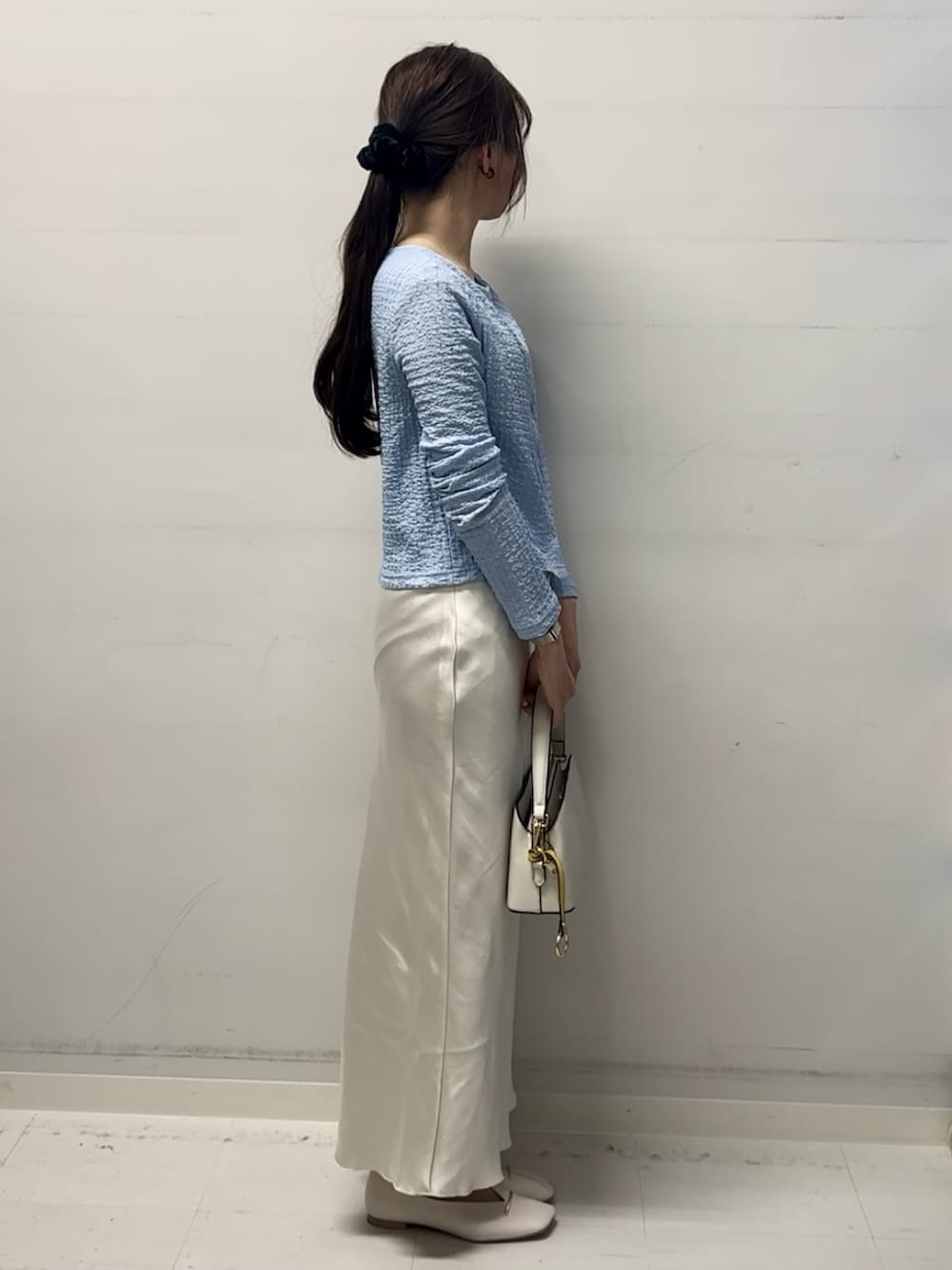 サテン素材のスカートはきれいめコーデの際にとても使いやすいアイテムです😊