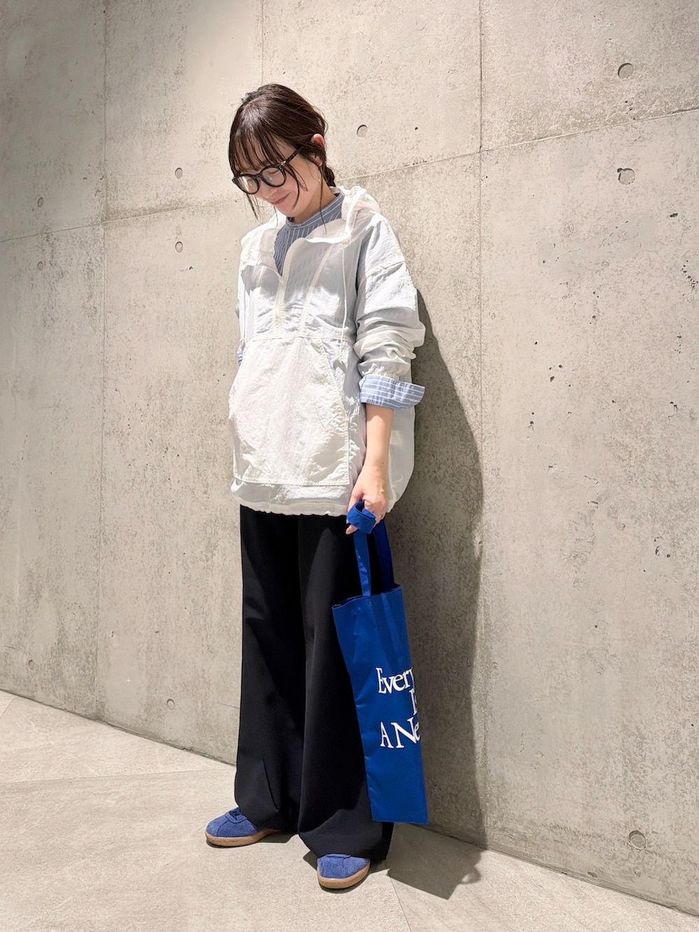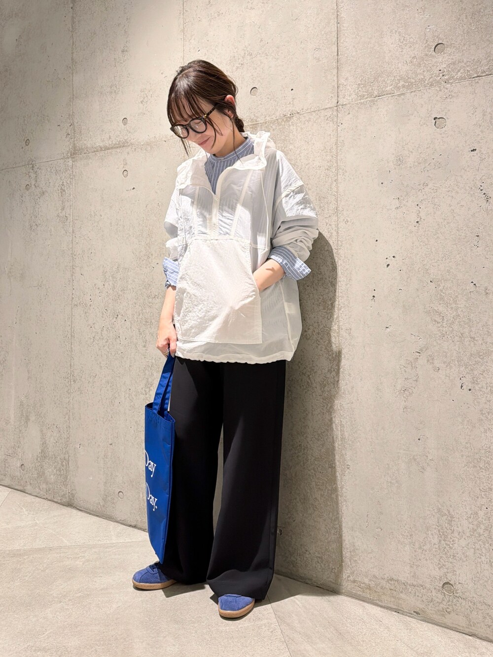 パンツは落ち感のある生地で、キレイめでもお使いいただけます。
