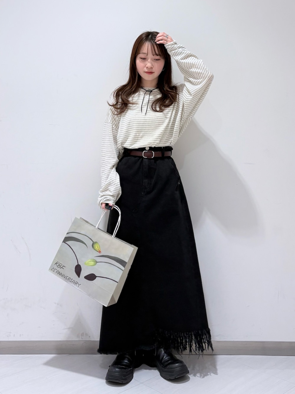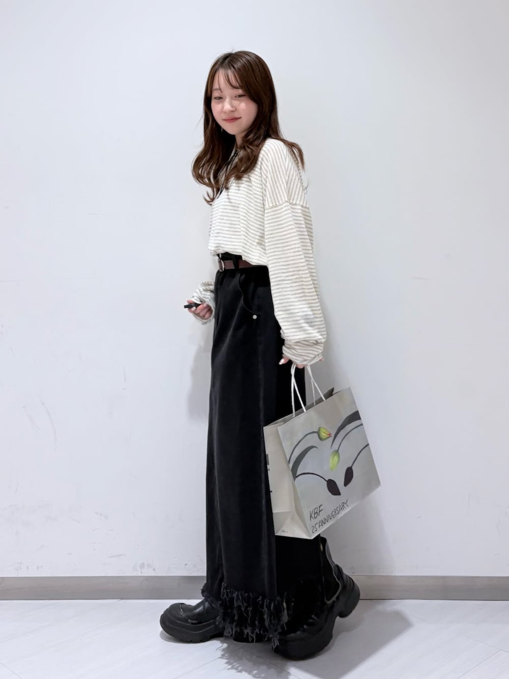 スカートはウエストで履いてペタンコでもギリギリいけそうな丈感でした!!