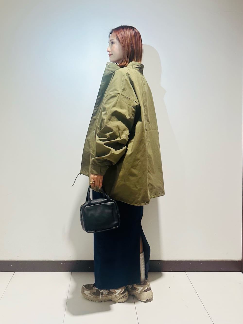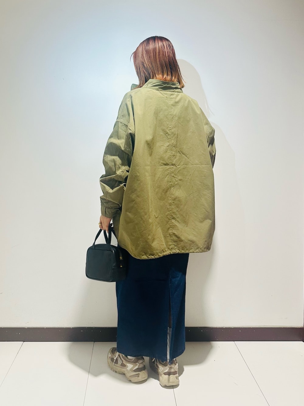 ミリタリーコート×デニムワンピースコーデ🩷