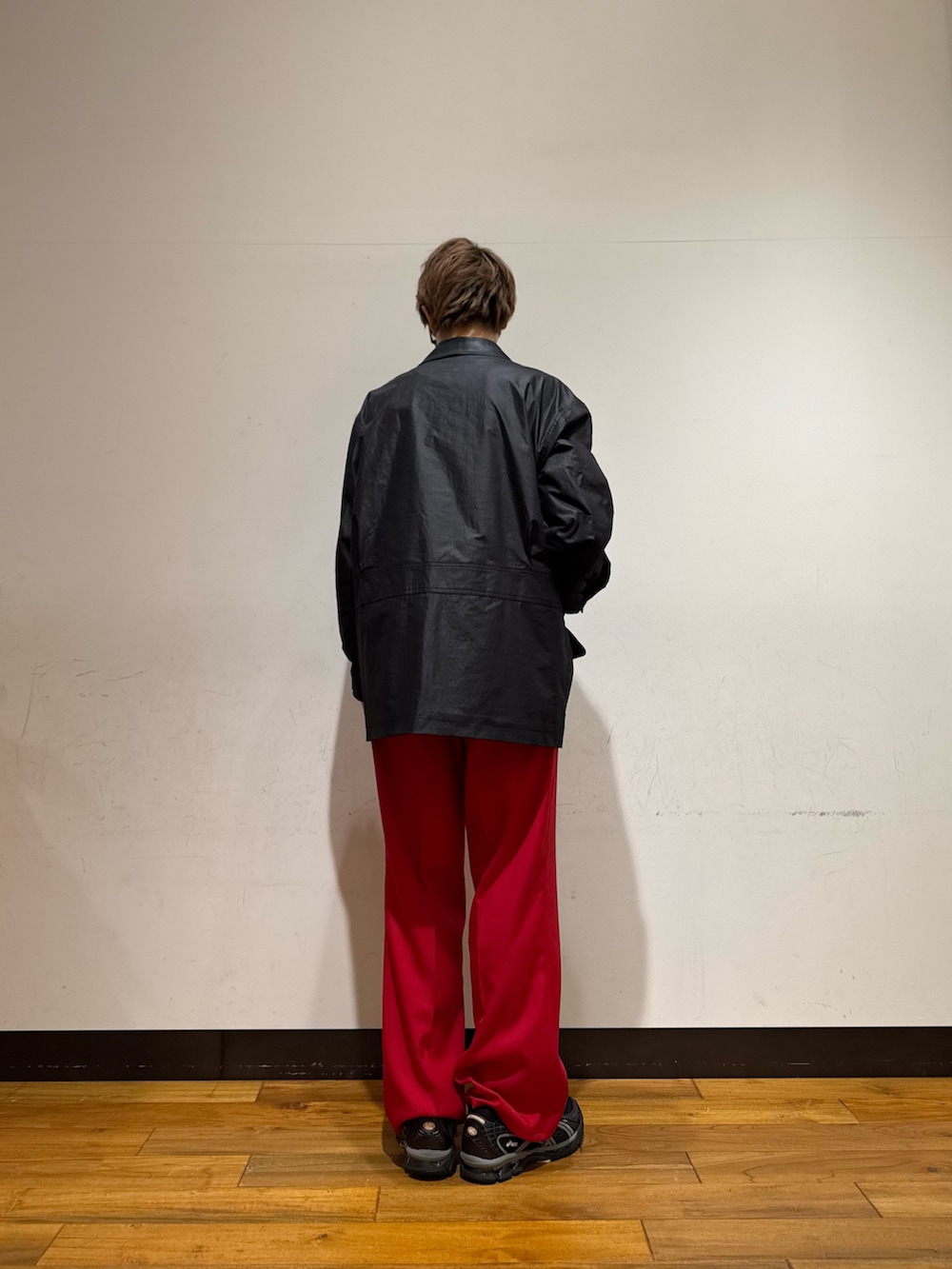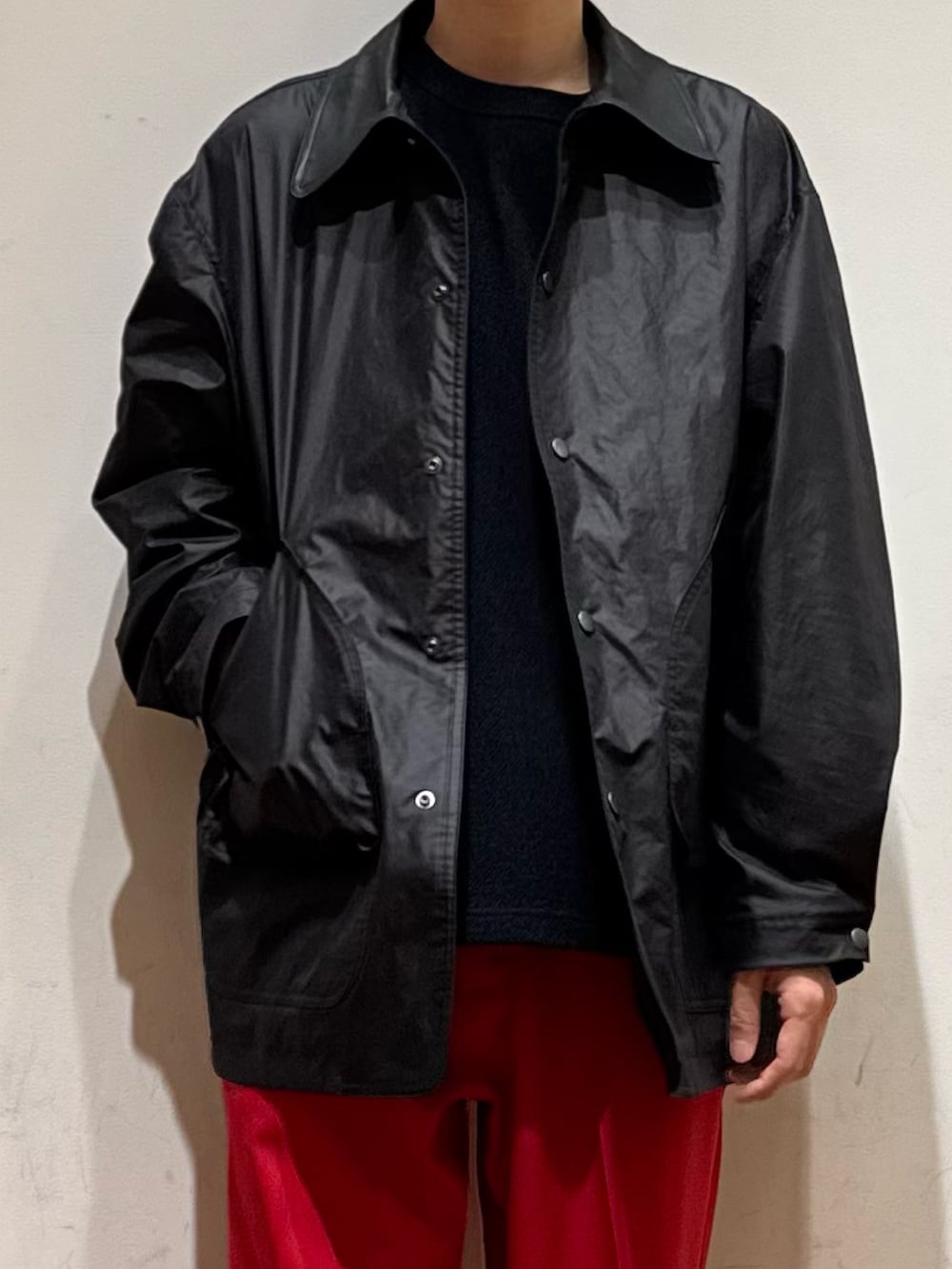 ポリエステル、ナイロン素材ですがオイル感があり上品さがある質感となってます!