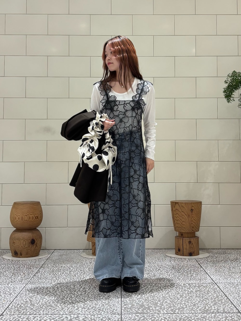 トレンド感のあるドット柄ファッションバッグです。存在感のあるアイテムなのでシンプルなスタイリングと相性◎ 【UR/Opera SPORT/MINI SHIRLEY BAG/BLACK DOTS】
