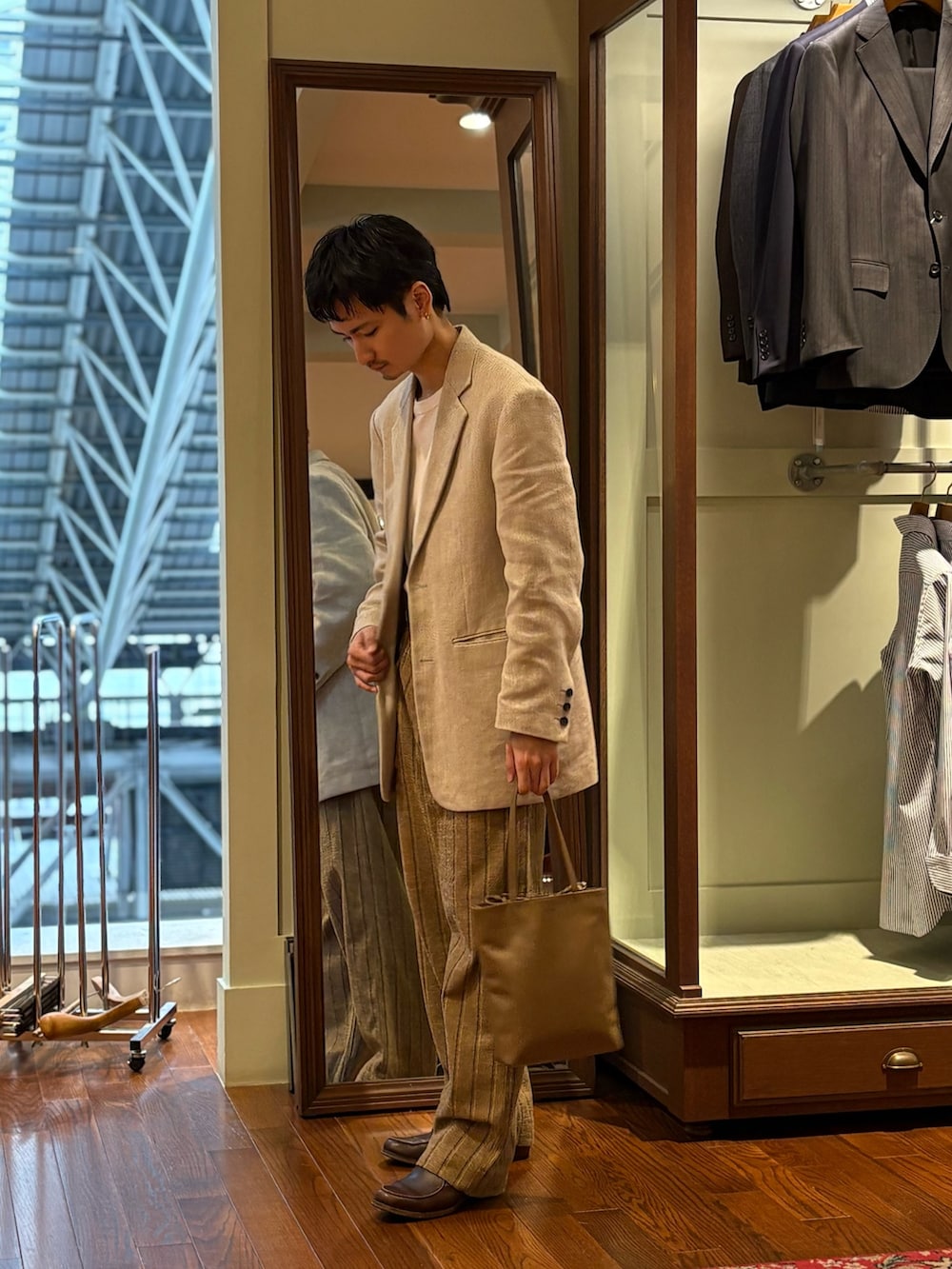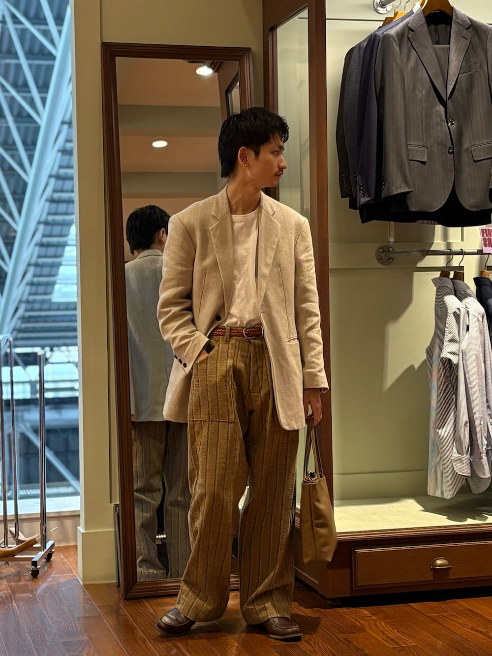 今回は私物の味が出まくっているリネンジャケットにwillowpantsを合わせました。
