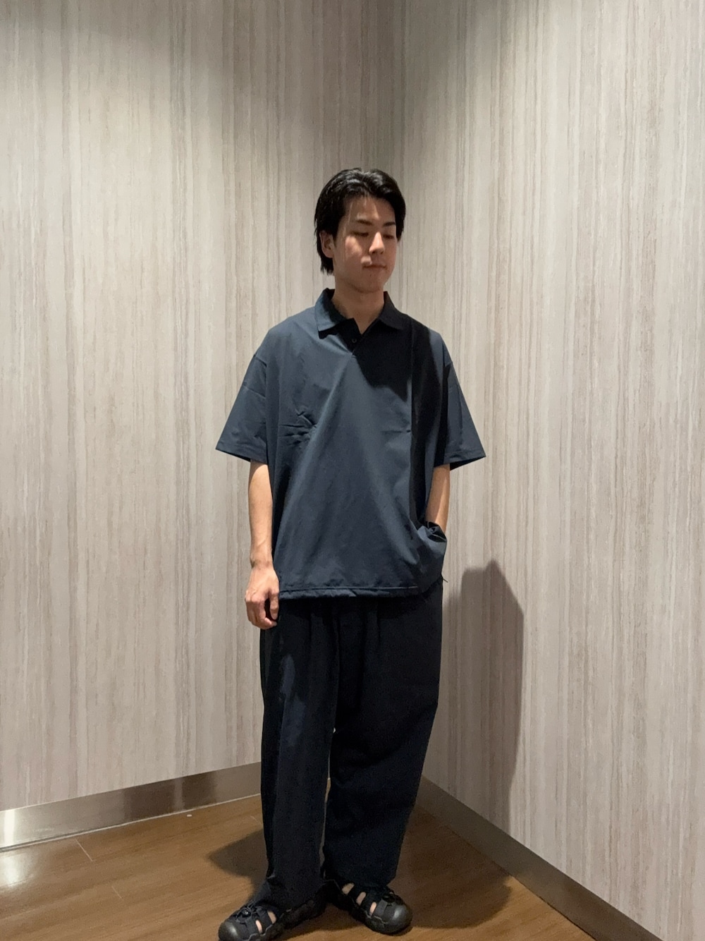 パンツは腰回りにゆとりを持たせつつ広がりすぎないシルエットで、体型を拾わず綺麗に見せてくれます!