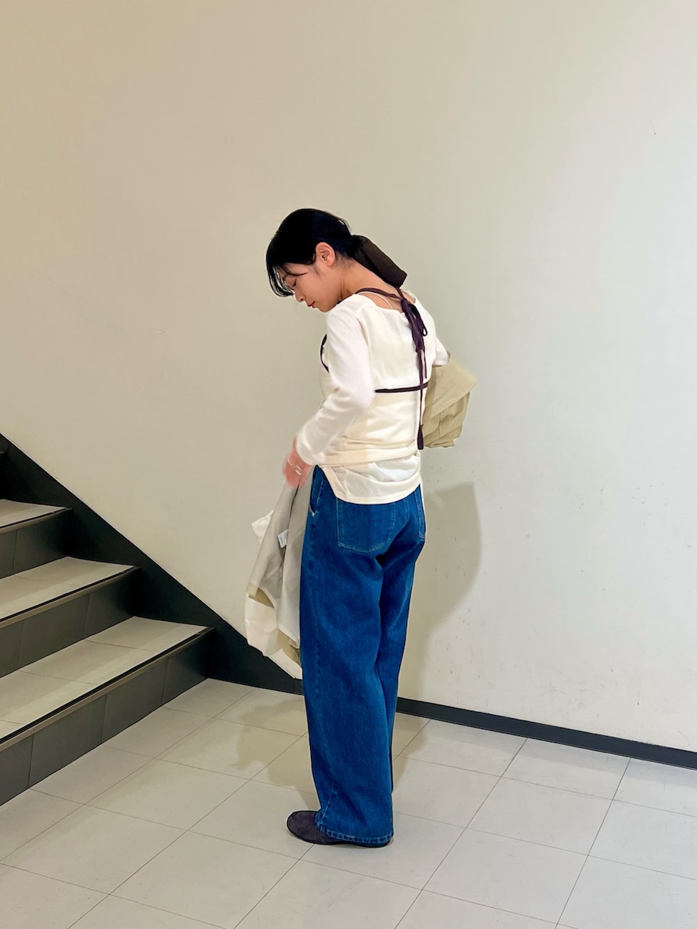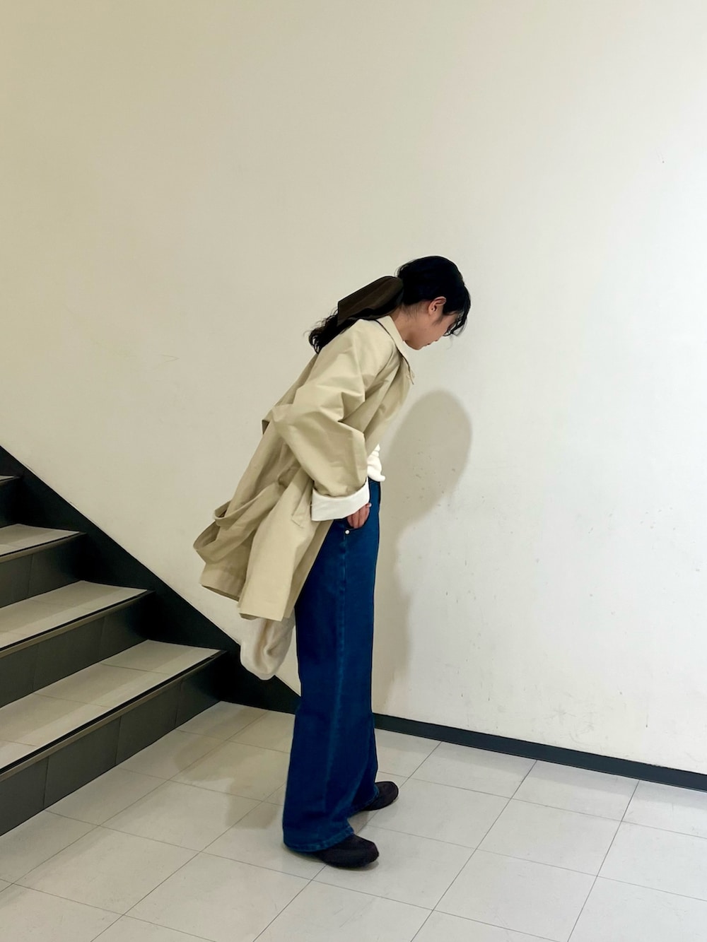 上に目線が行くので足長効果とストレートの形が足を綺麗に見せてくれます🙆‍♀️