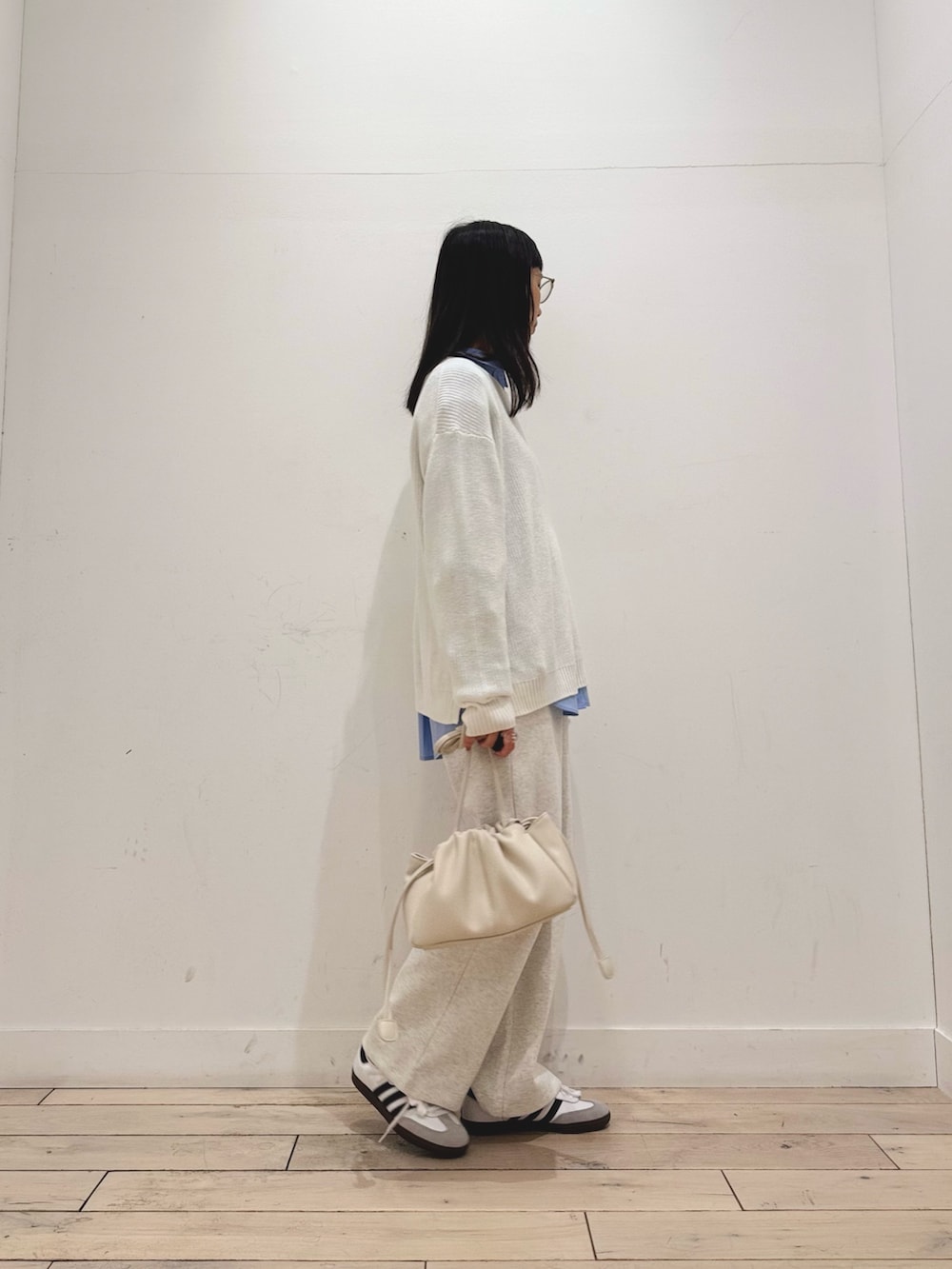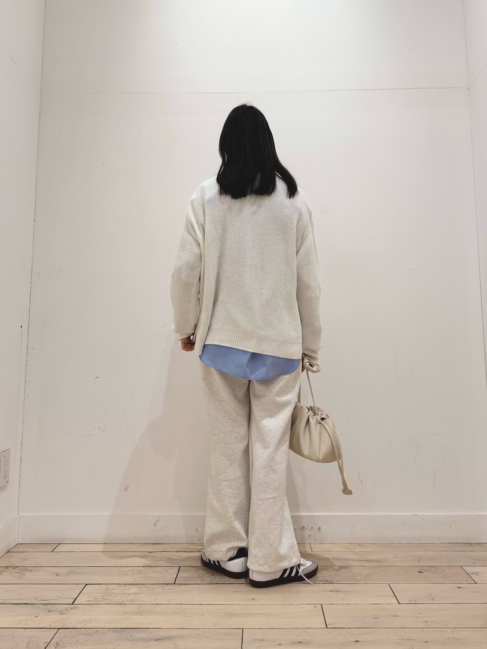 アイテムはきれいめ多めですがスウェットパンツとスニーカーでカジュアル感も👟