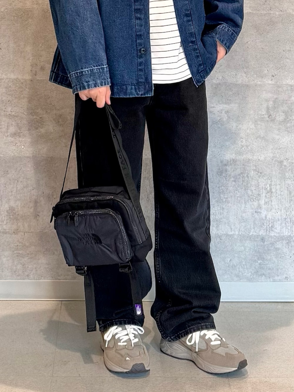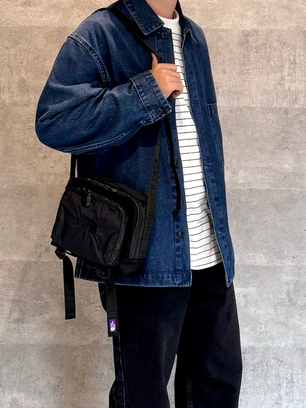 THE NORTH FACE パープルレーベルのショルダーバッグをメインにコーディネート。