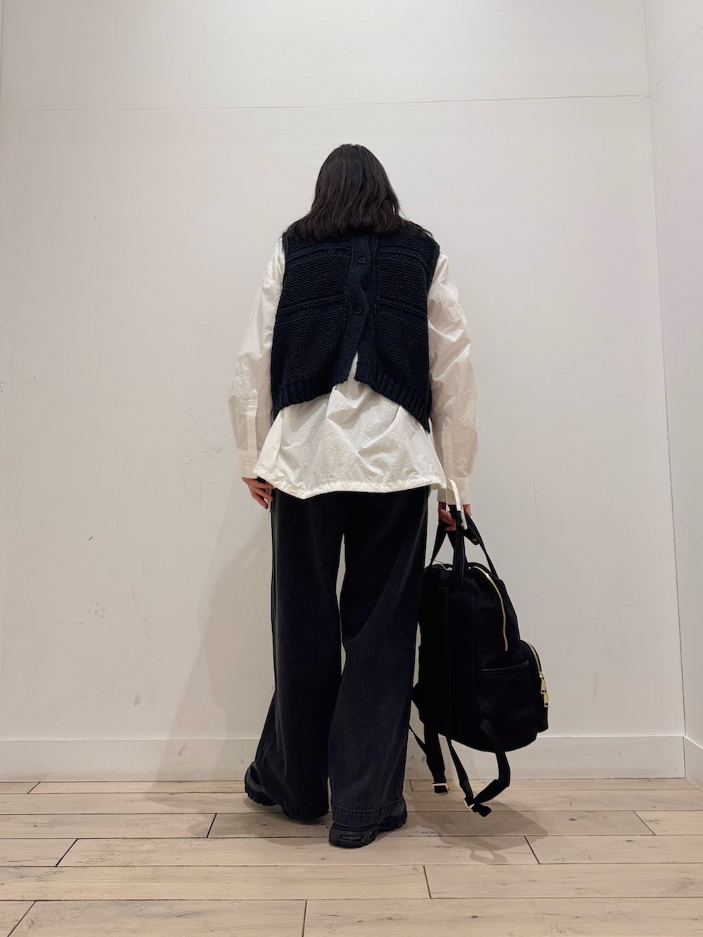 ニットベストは前後2way仕様で雰囲気変えられます◎丈短めなのでレイヤードを楽しみやすいです☺️