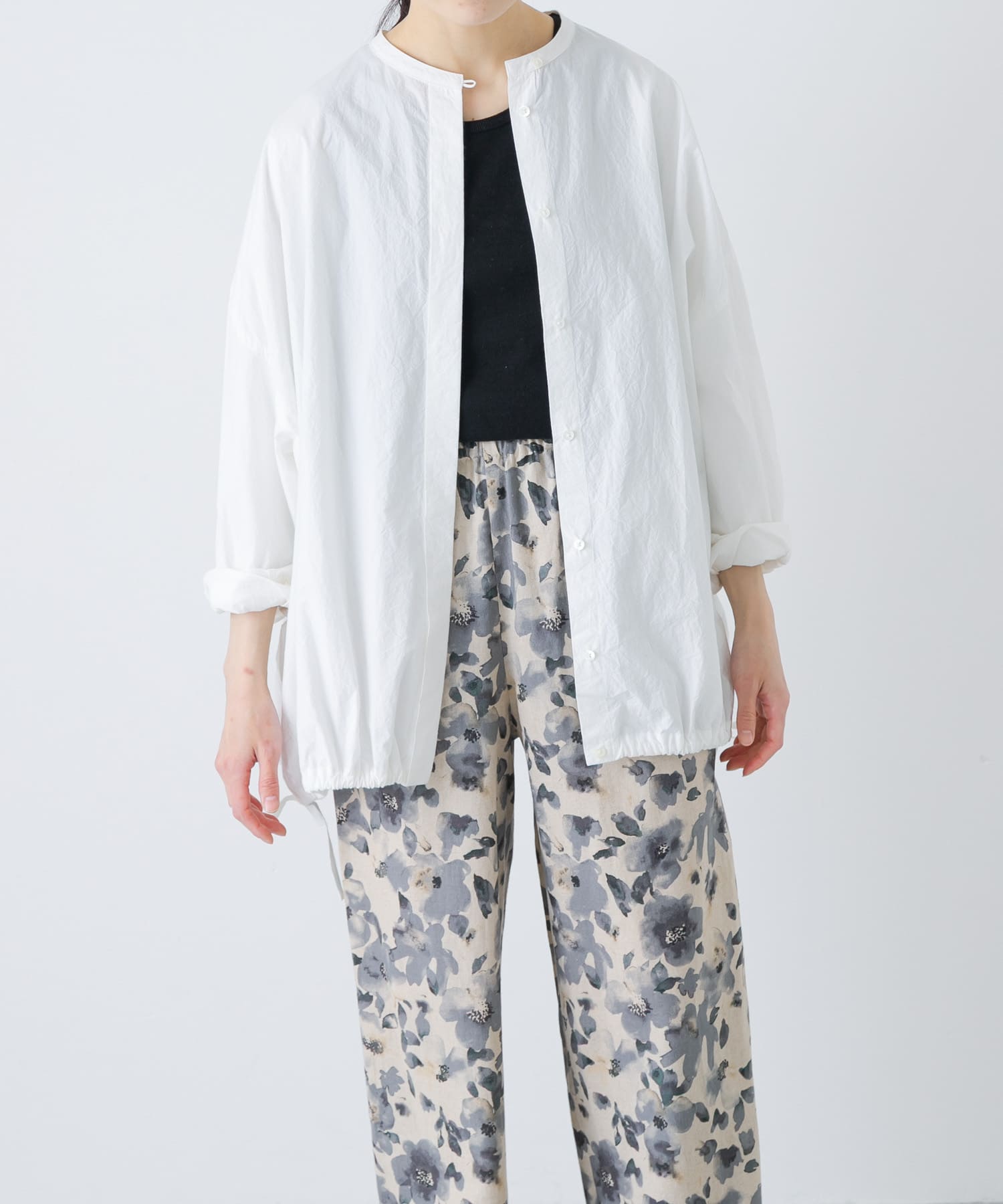 ノーカラークルーネックオーバーシャツ