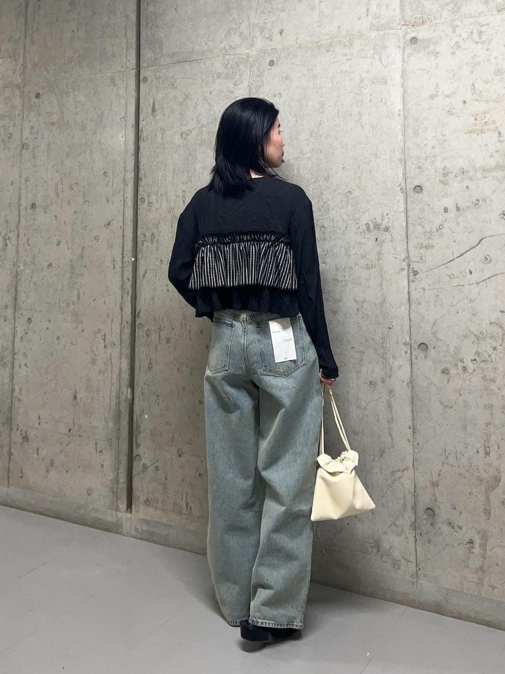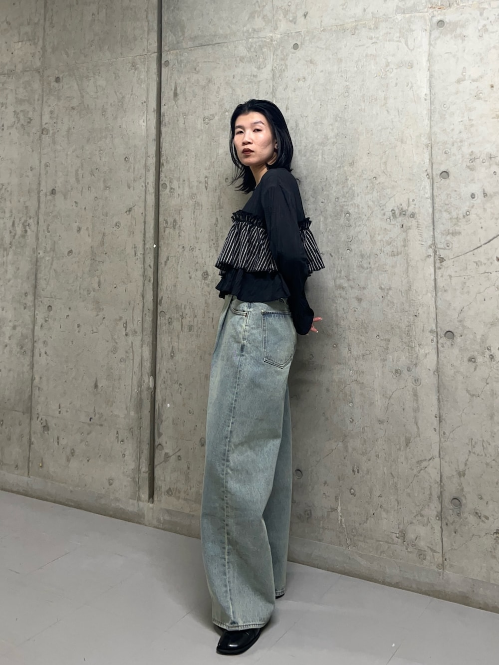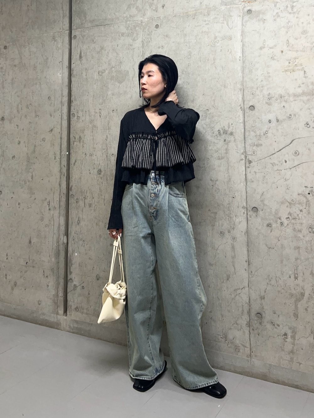 ワイドなデニムと合わせて甘めブラウスも、カジュアルダウンさせて着てみました^^