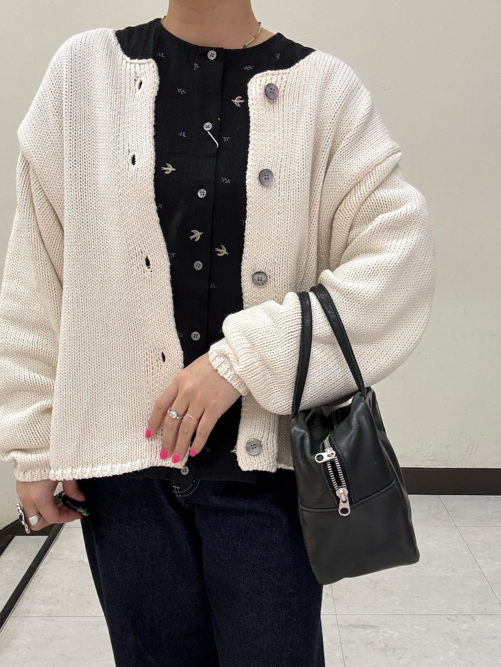 白いカーディガンはかぐれのアイテムです。