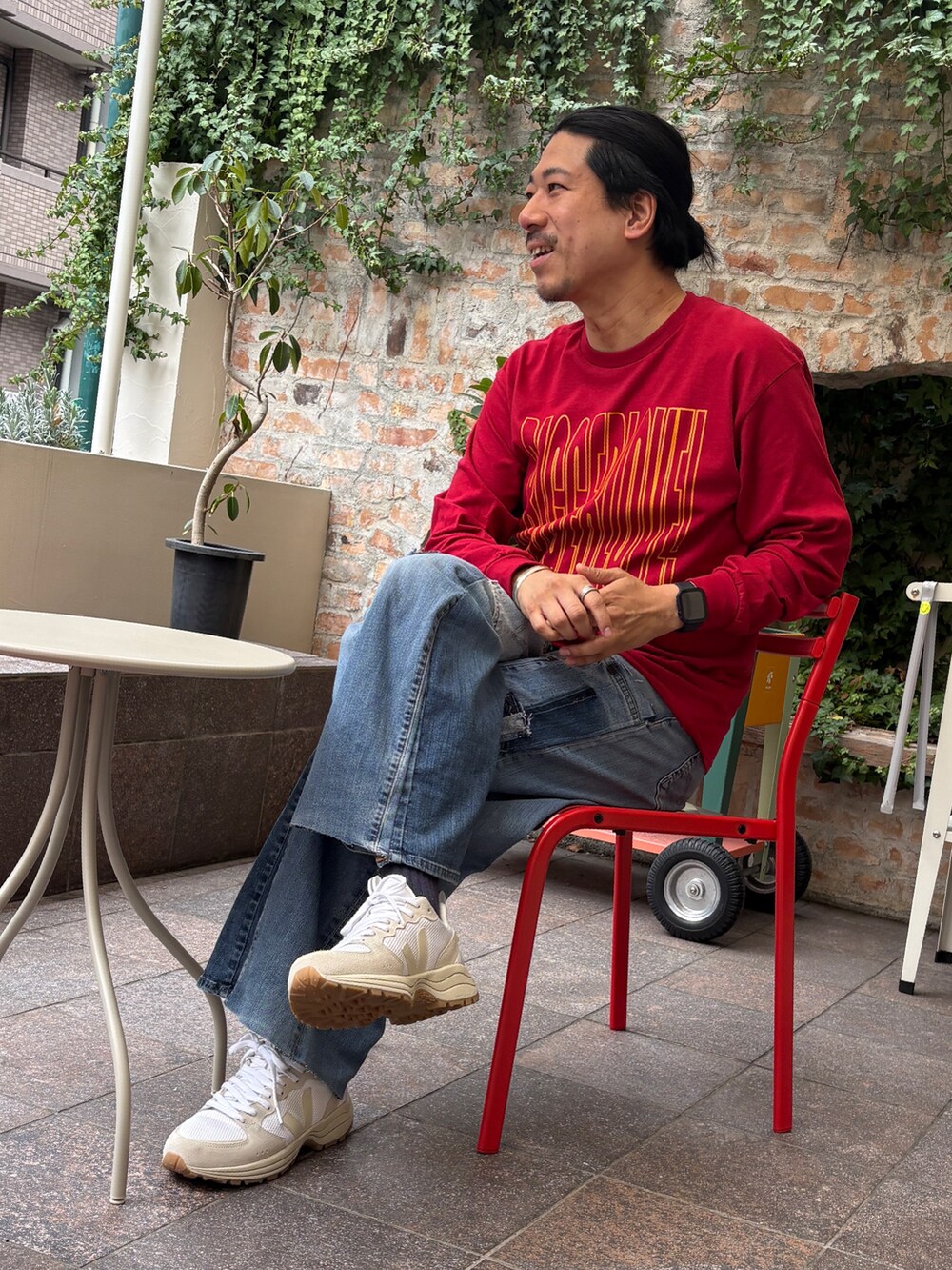 シンプルにデニム×スニーカーと合わせてまずは新しいカラーにチャレンジです。