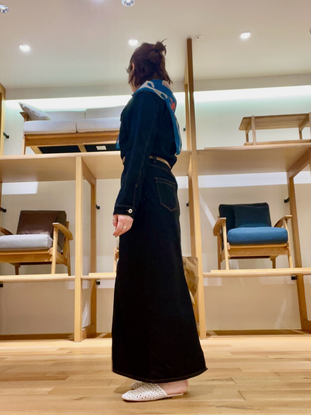スカーフをちょい足しする事で旬なコーディネートに◉