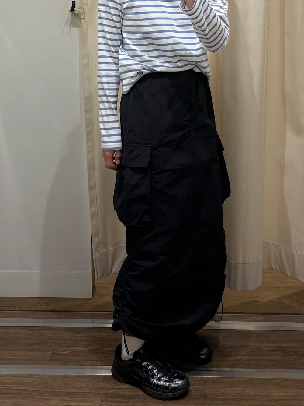 スカートコーデは甘くなりがちだけどスポーティーな要素もあるのでカジュアル感もバッチリ〜
