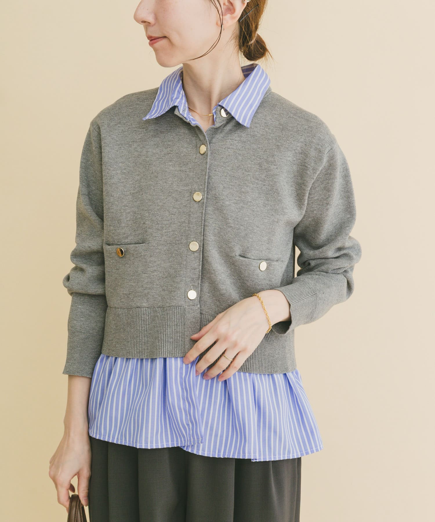 シャツレイヤーニットカーディガン