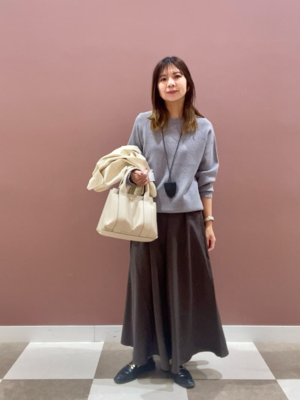 ニットとスカートがセットなのでこれだけでコーディネートが完成するアイテム✨