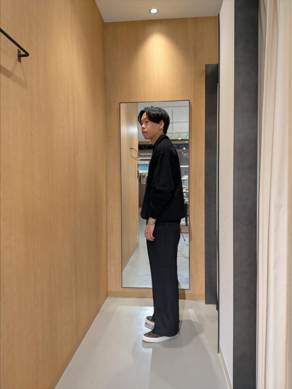 単色コーデなので差し色にVANS別注を取り入れました。