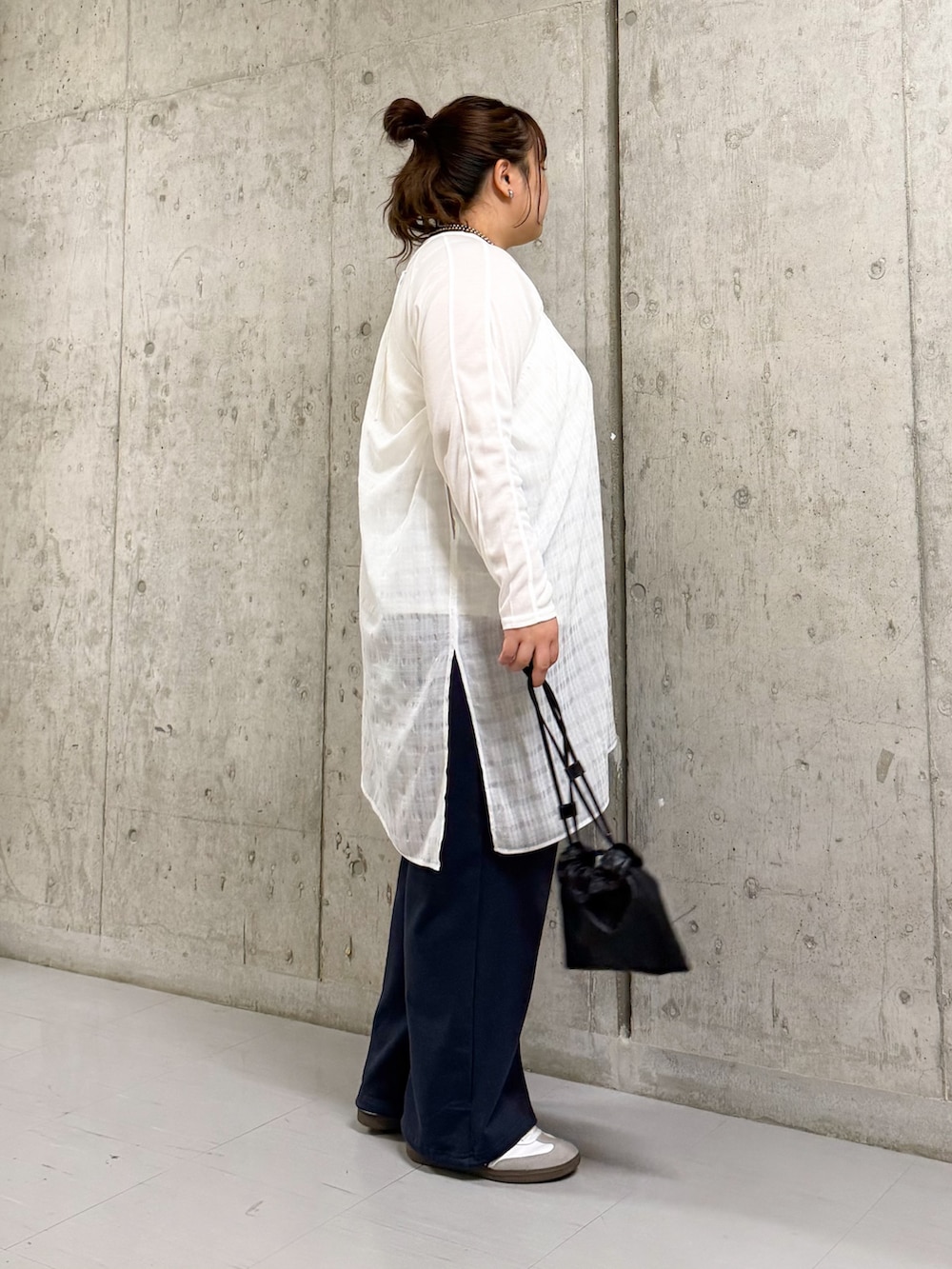 カットソーは程よい透け感が可愛く、サイズ感もゆったりサイズで◎