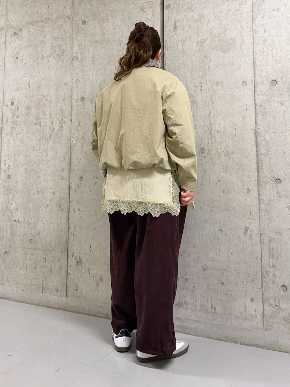 アウターはバルーンシルエットが可愛く、襟も取り外しが出来るので、雰囲気を変えて着ていただけます!