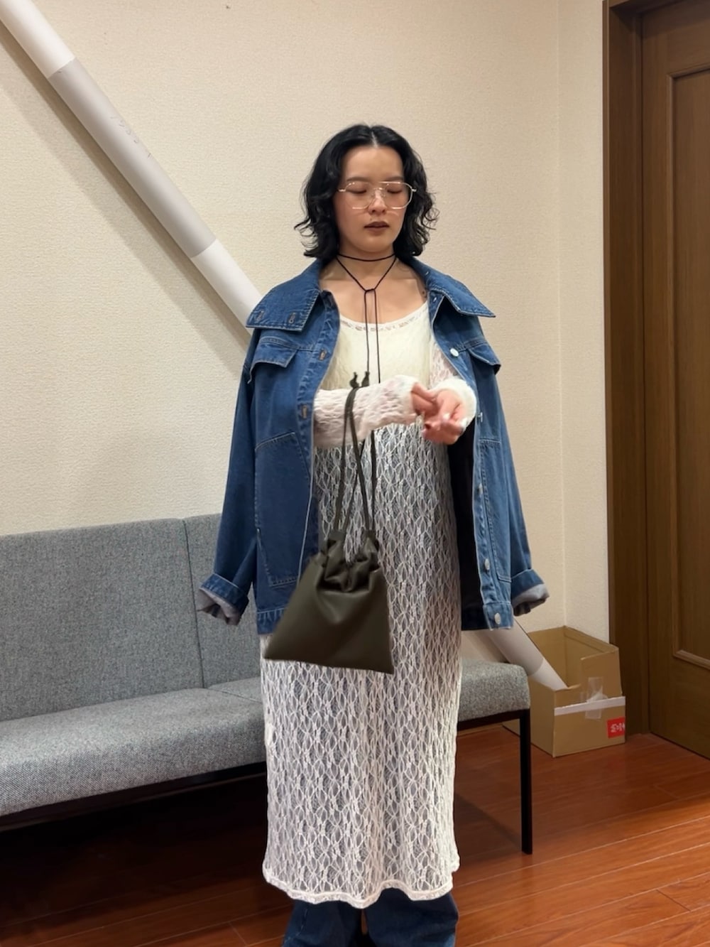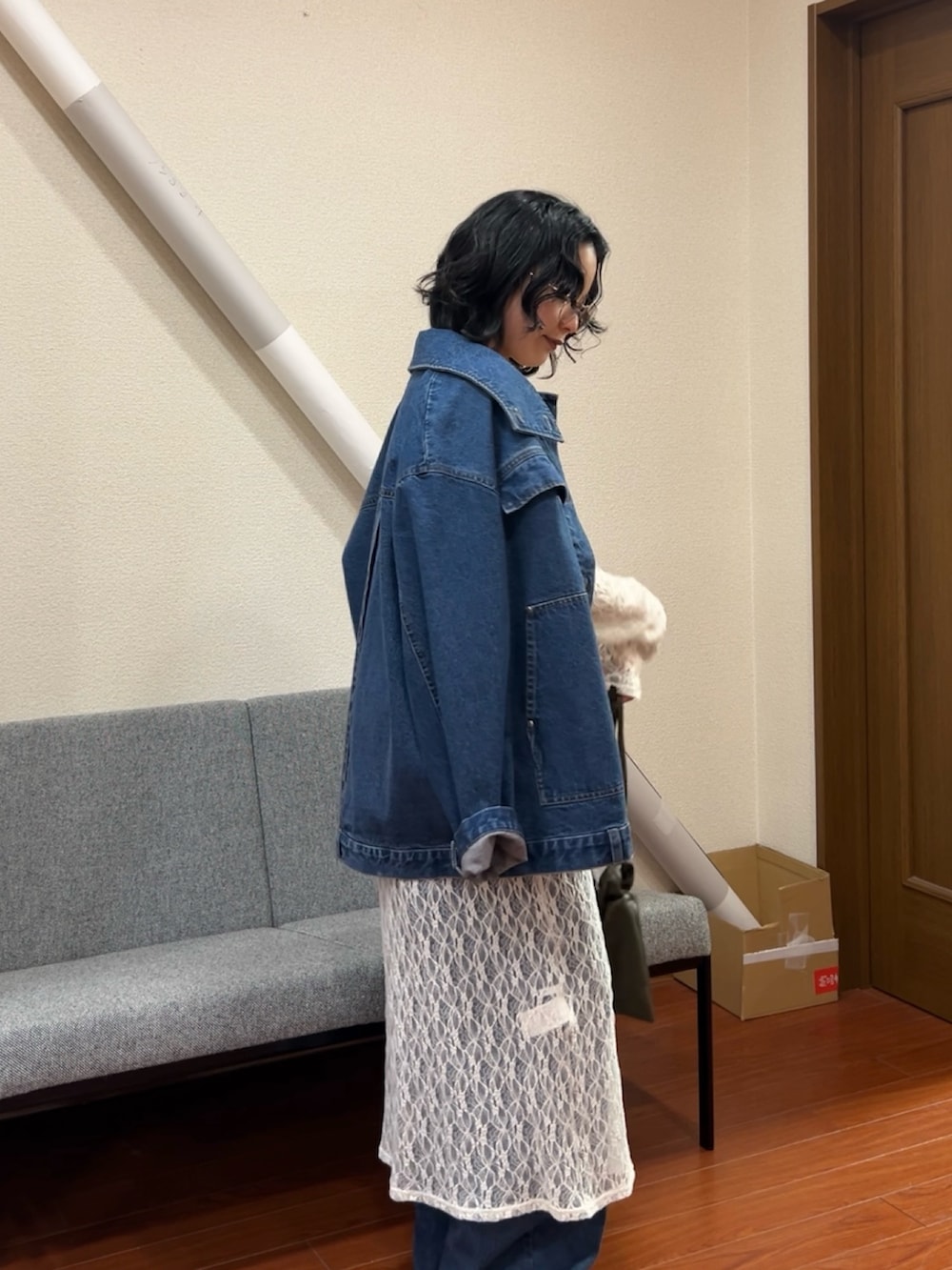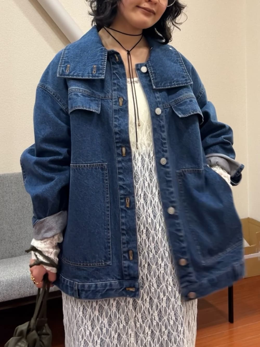 オーバーサイズなデニムジャケットはレースアイテムなど甘めなものと合わせるバランスが◎