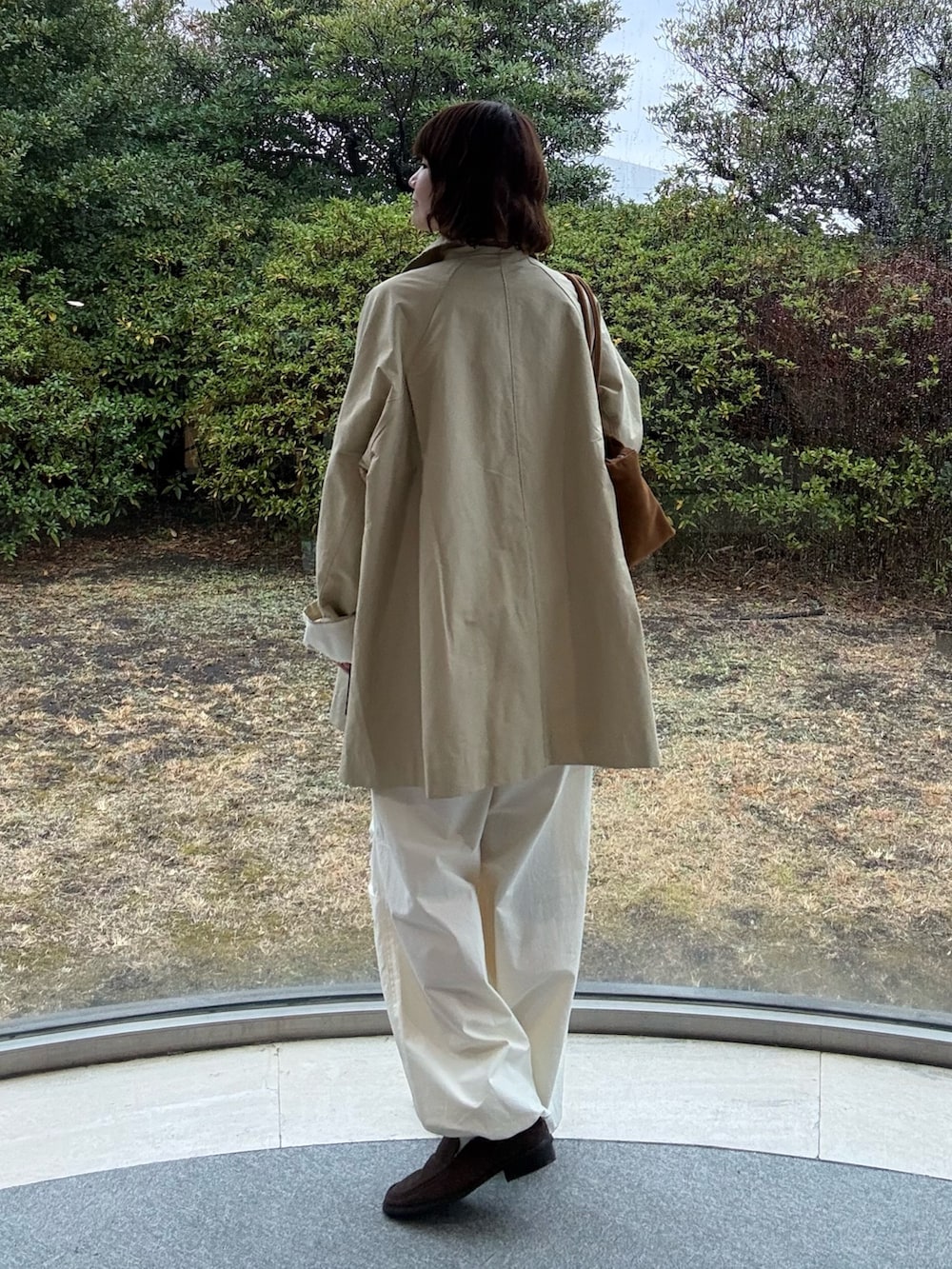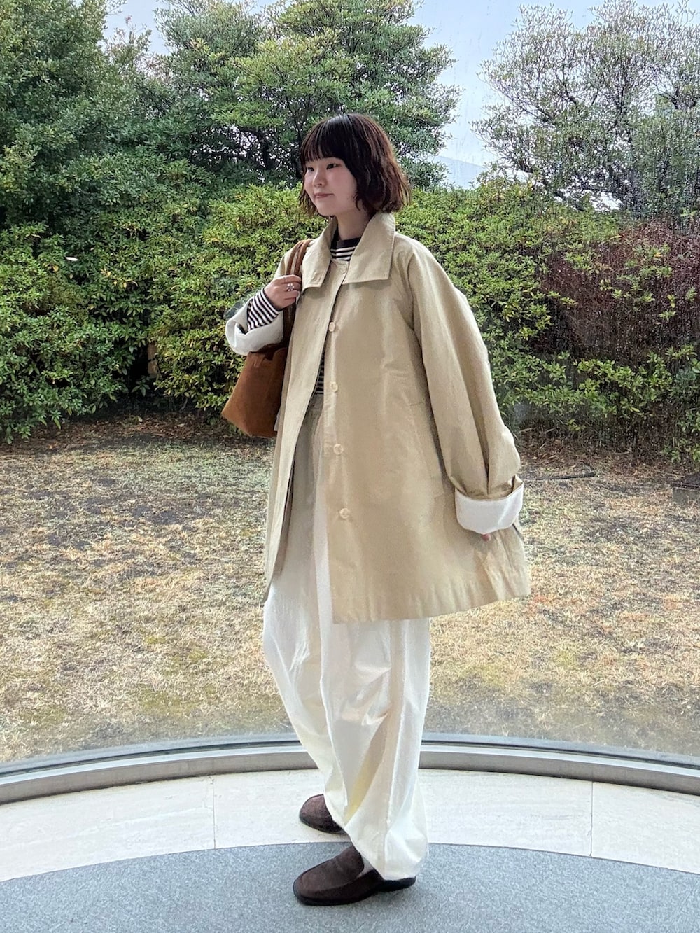 アウターはミドル丈で、付属でひもがついているので、そちらを巻いてウエストマークすることもできます!が、私はあえてなしで縦ラインを意識してみました^^