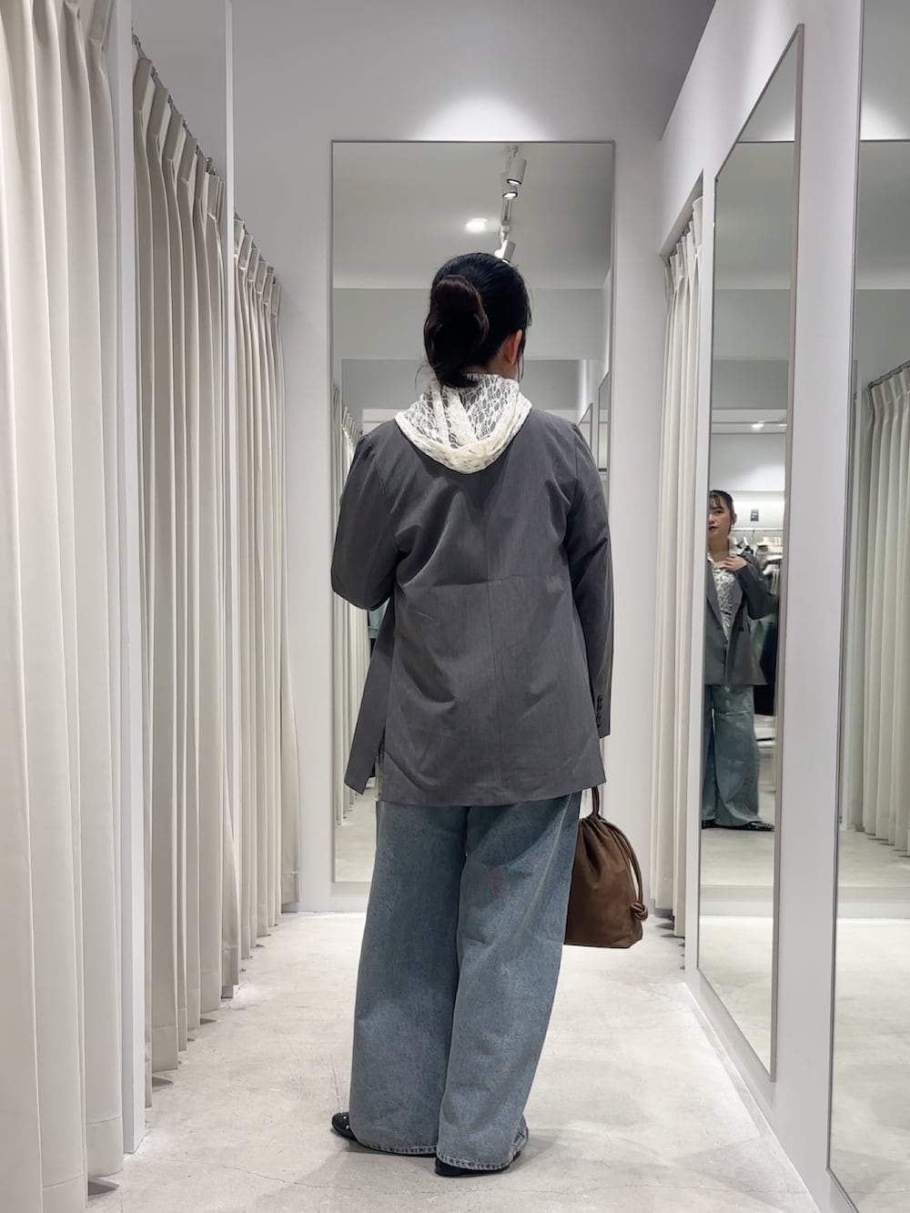 イマドキっぽく、レースのフーディ×ジャケットでキレイめすぎないトレンド感のあるコーデにしてみました✨️