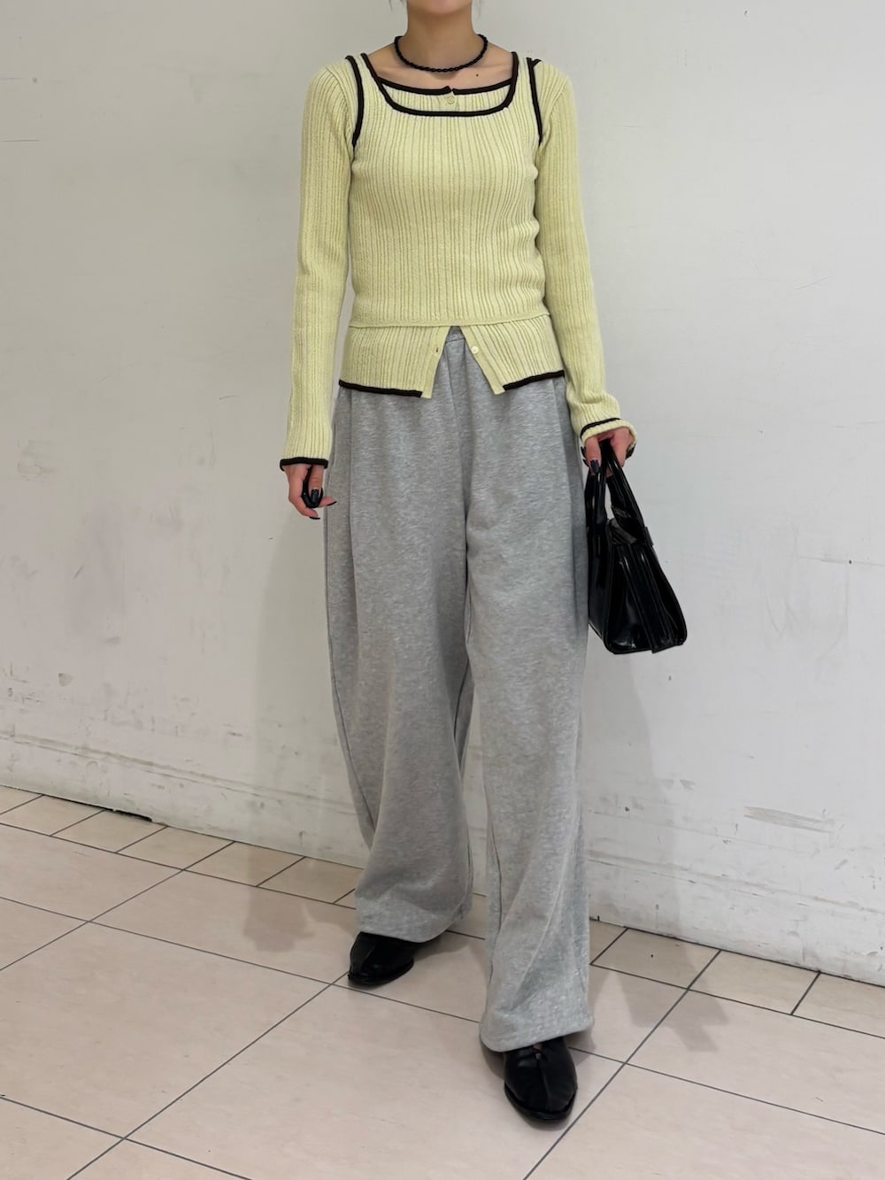 2WAY タンクトップSETカーディガン配色がポイントになって、スッキリと着れるアイテム!下のボタンを1.2個外して少し抜け感を出すのがおすすめです!