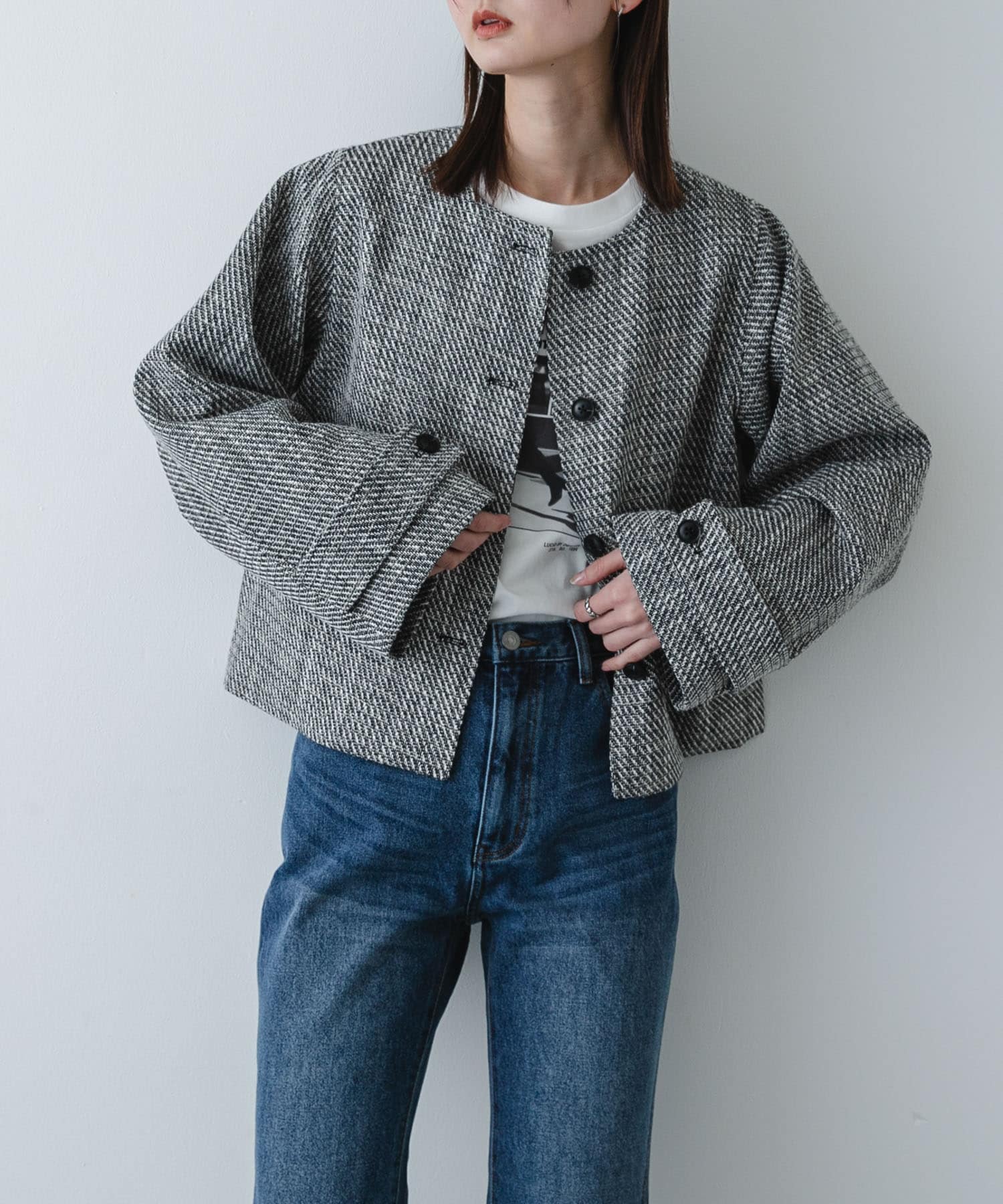 上品な印象のツイードジャケットを使ったコーディネート💫