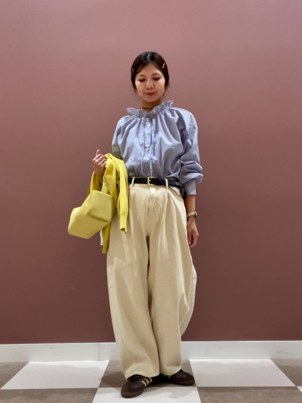 ストライプ柄がカジュアルダウンしてくれるのでフリル苦手な方も挑戦しやすいアイテムです!