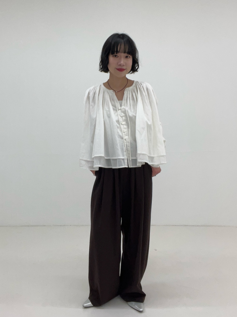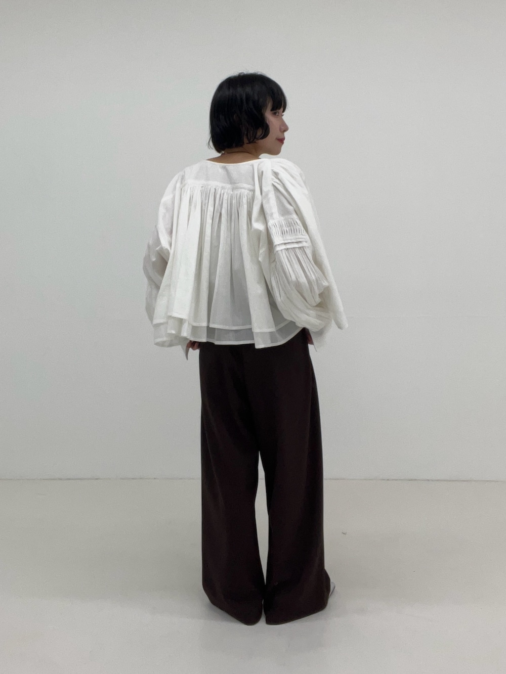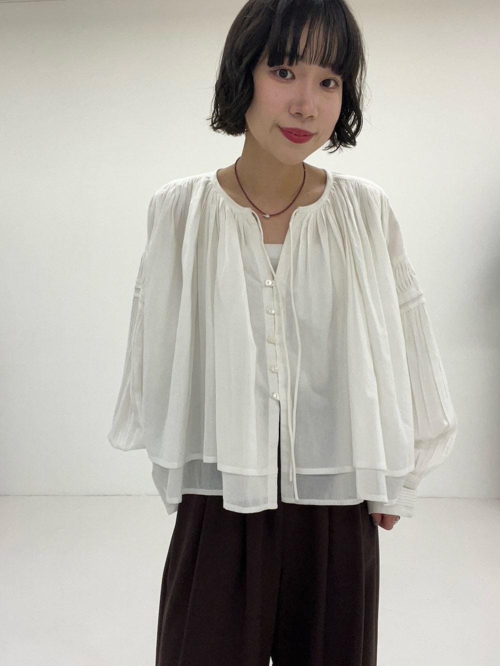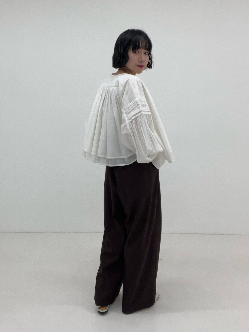 ふんわりとしたボリューム感と少し透け感のある素材が女性らしい雰囲気で着ていただけます◎