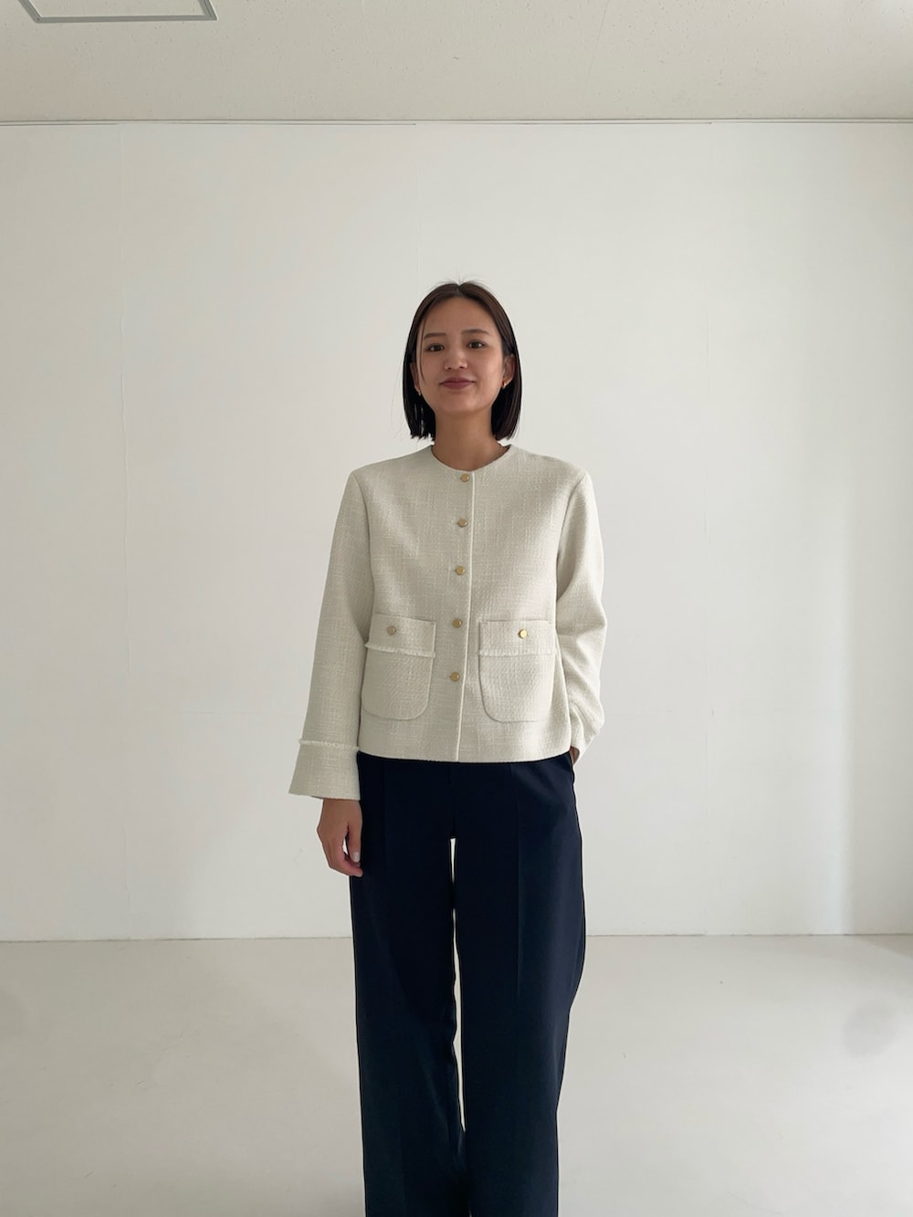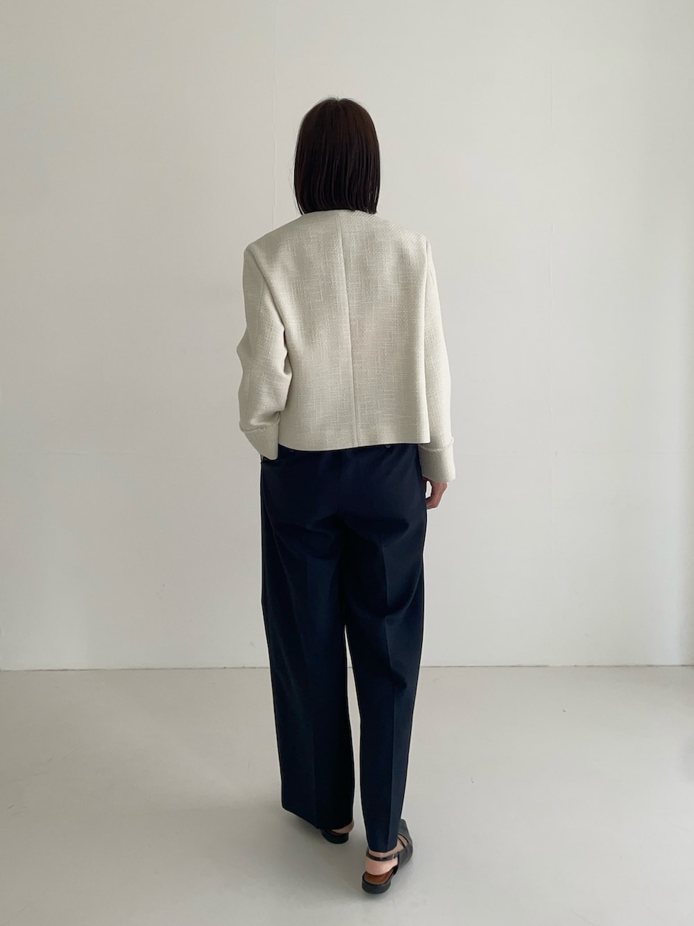 ノーカラーツイードジャケット