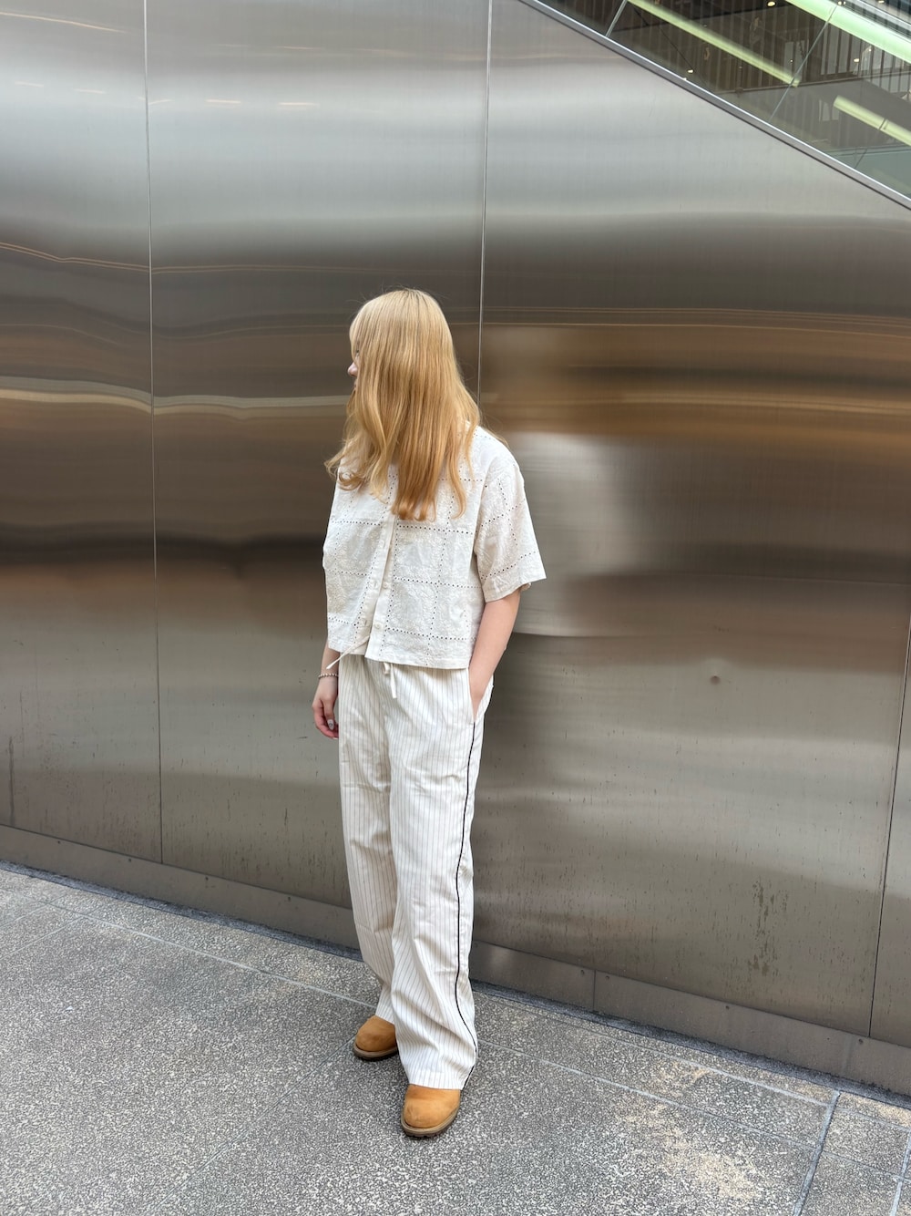 かなりトレンド感が強く、簡単に着回しのしやすい商品です。Tシャツ、長袖シャツ、スウェット、パーカーの上にバサッと着れる1着です。中にはプリントデザインが入った商品と合わせるのがおすすめです。