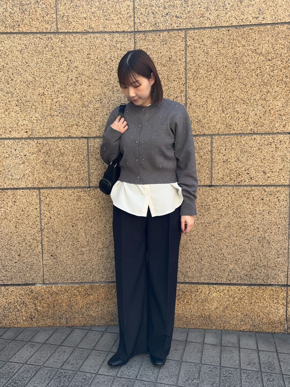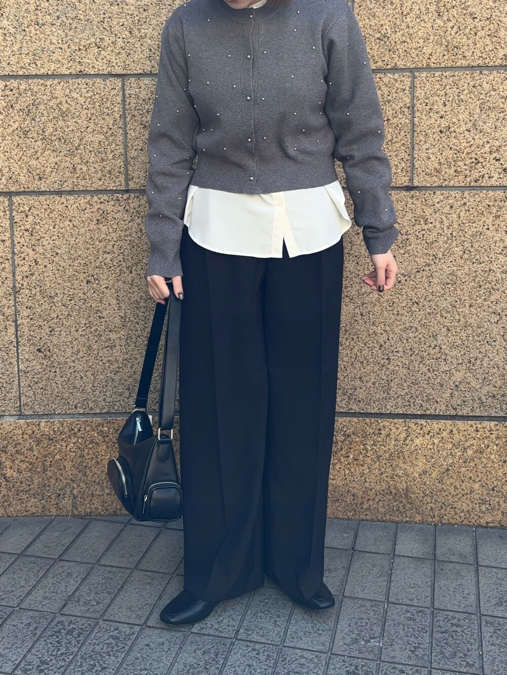 可愛いボールビーズがついたカーディガンを使ったコーデです♡