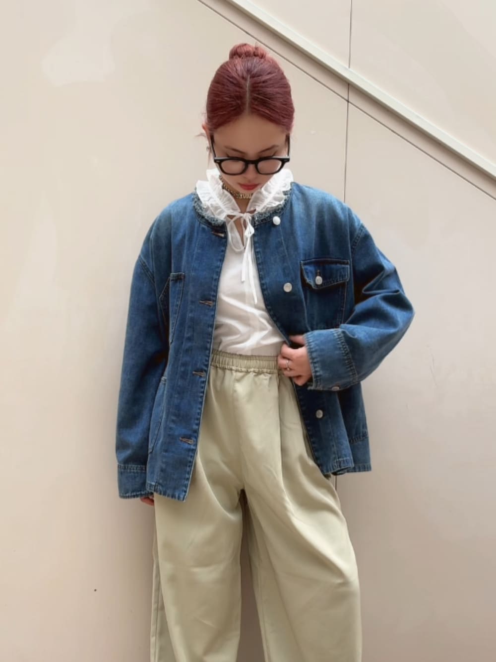ITEMSデニムオーバーノーカラージャケット- 着用カラー: